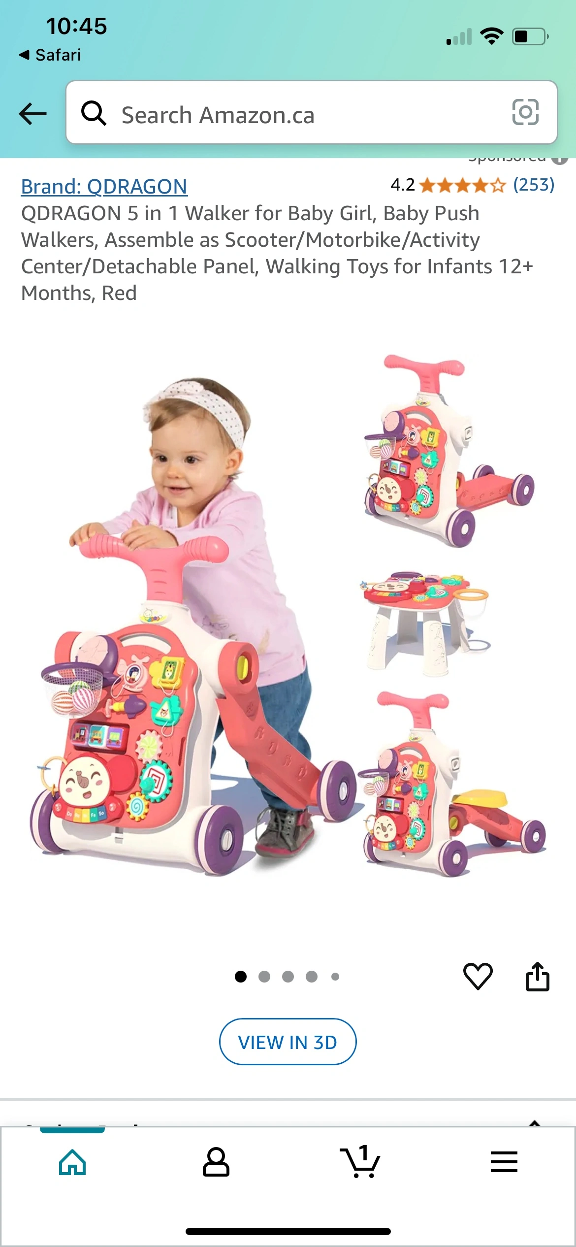 106QDRAGON 5 in 1 Walker for Baby Girl, Baby Push Walkers, Assemble as Scooter/Motorbike/Activity Center/Detachable Panel, Walking Toys for Infants 12+ Months, Red/pink