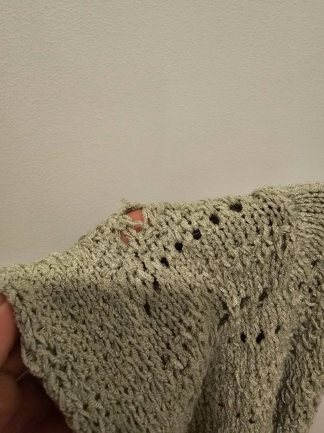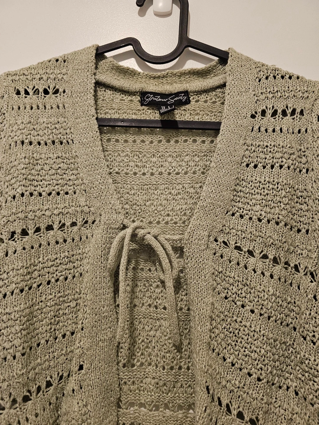 Lightweight, cropped knit cardigan from Forever 21 Streetwear Society. Features a front tie closure and a detailed open-knit pattern. Size small.
