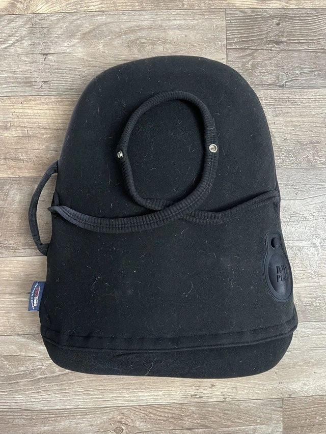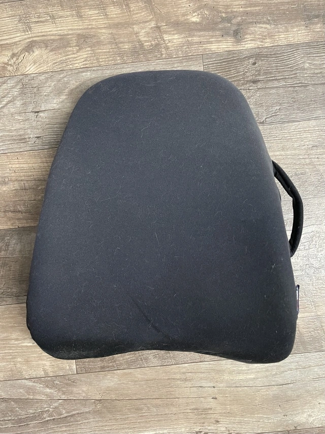 Used but in good condition. Has a strap to attach to a chair. This model also has an air pump with bladder for customized lumbar support. If ad is up, it’s still available.