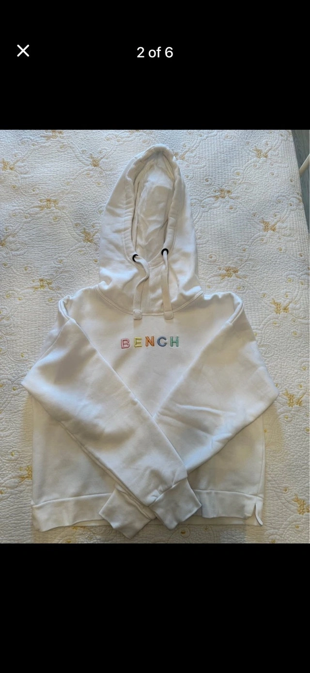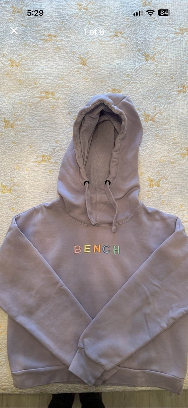 New BENCH fleece lined hoodies, size L, $30 each. Features Manaia Chest Logo Hoodie with cowlneck, flat drawstring, and large multicolor logo embroidery. Ribbed cuffs with thumbholes, drop shoulders, oversized silhouette. Also available: NEW PUMA Hoodie, size L, Rose/Mauve, not fleece lined, $30. Fleece lined joggers, size M (10-12), elasticized drawstring waistband, side pockets, small multicolored logo. $30 each. Cash accepted. Curbside pickup available.