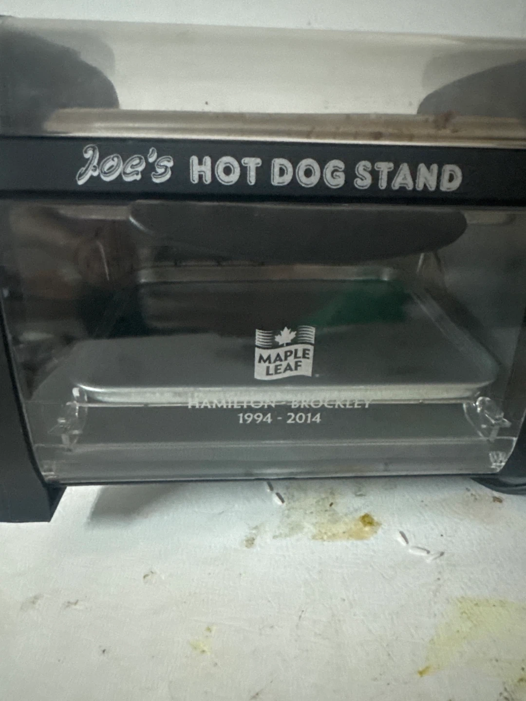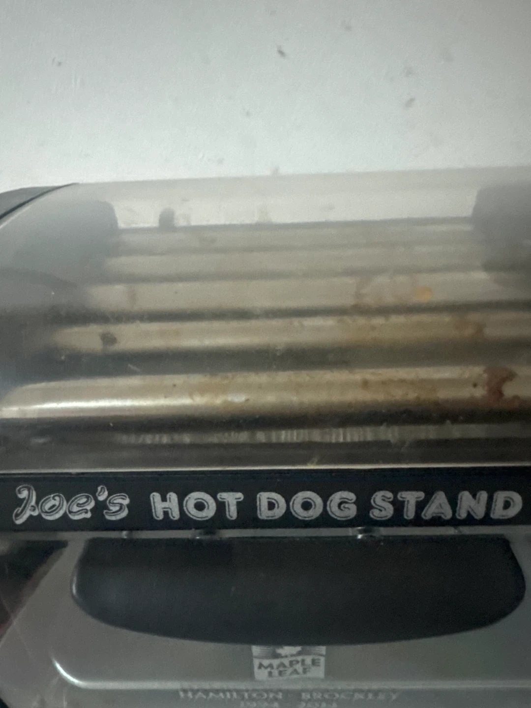 This is Joe's Hot Dog Stand by Maple Leaf. It's designed for making hot dogs. The unit has roller bars and a drip tray.