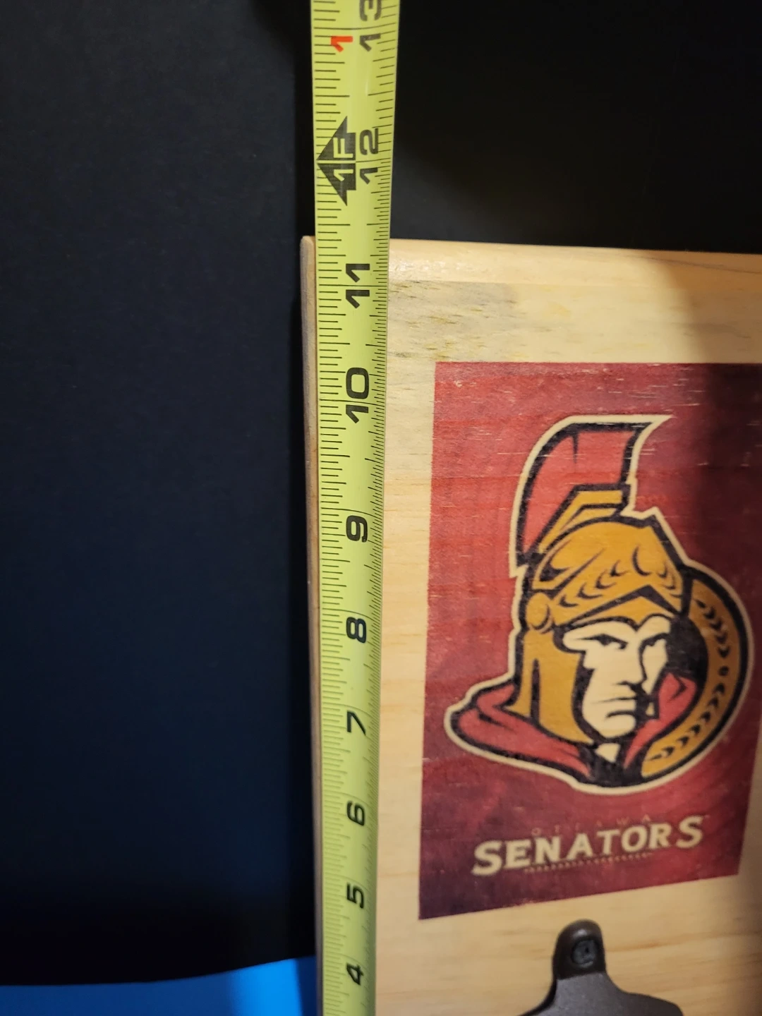 This set features an Ottawa Senators wall-mount bottle opener with a rustic wood finish. It also includes a pint glass with the team logo and Canadian maple leaf. Perfect for any hockey fan's home bar or kitchen!