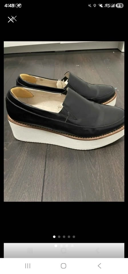 Black Patent leather platforms. Used a few times. I've added a Scholl foam sticker inside the heel for extra comfort, but it's removable. Feel free to reach out if you have any questions.