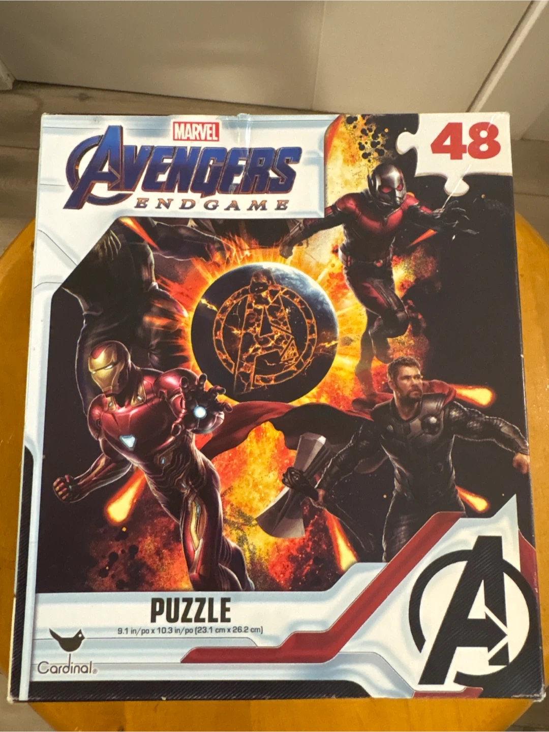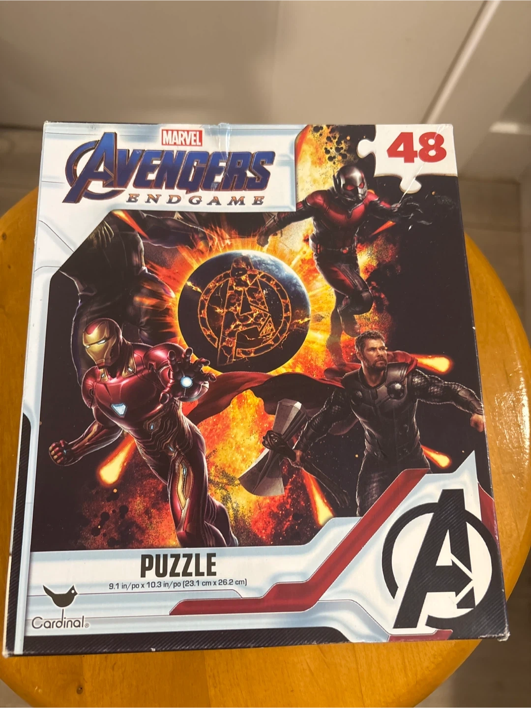 This Marvel Avengers Endgame puzzle has 48 pieces. The puzzle dimensions are 9.1 in x 10.3 in (23.1 cm x 26.2 cm). It's great for young fans of the Avengers!