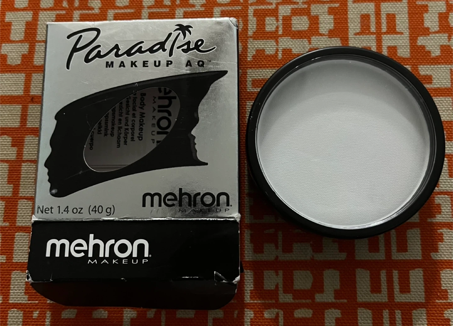 Mehron Makeup Paradise AQ Face & Body Makeup in White. This water-activated makeup is highly pigmented and uses a unique formula. It's smudgeproof once dry. 1.4 oz (40g) container.