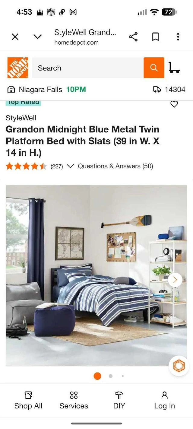 This is a StyleWell Grandon Midnight Blue Metal Twin Platform Bed, perfect for a child's room or a guest room. This bed is brand new, still sealed in the original packaging. Cash accepted.