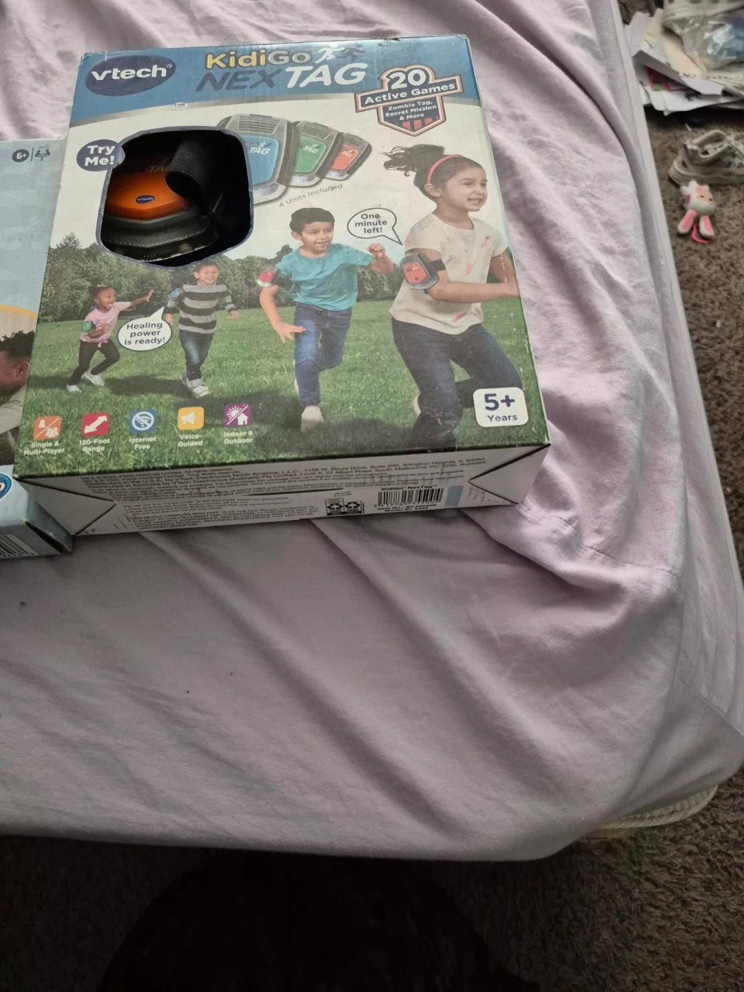 This Vtech KidiGo Nex Tag set includes active games for kids 5+. It offers 120-foot indoor and outdoor play also have Unicorn Candyland and Guess Who in good condition