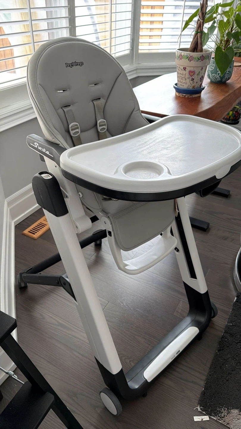 This is the Peg Perego Siesta, one of the best high chairs on the market. Super comfortable and easy to clean (every mom’s dream!).