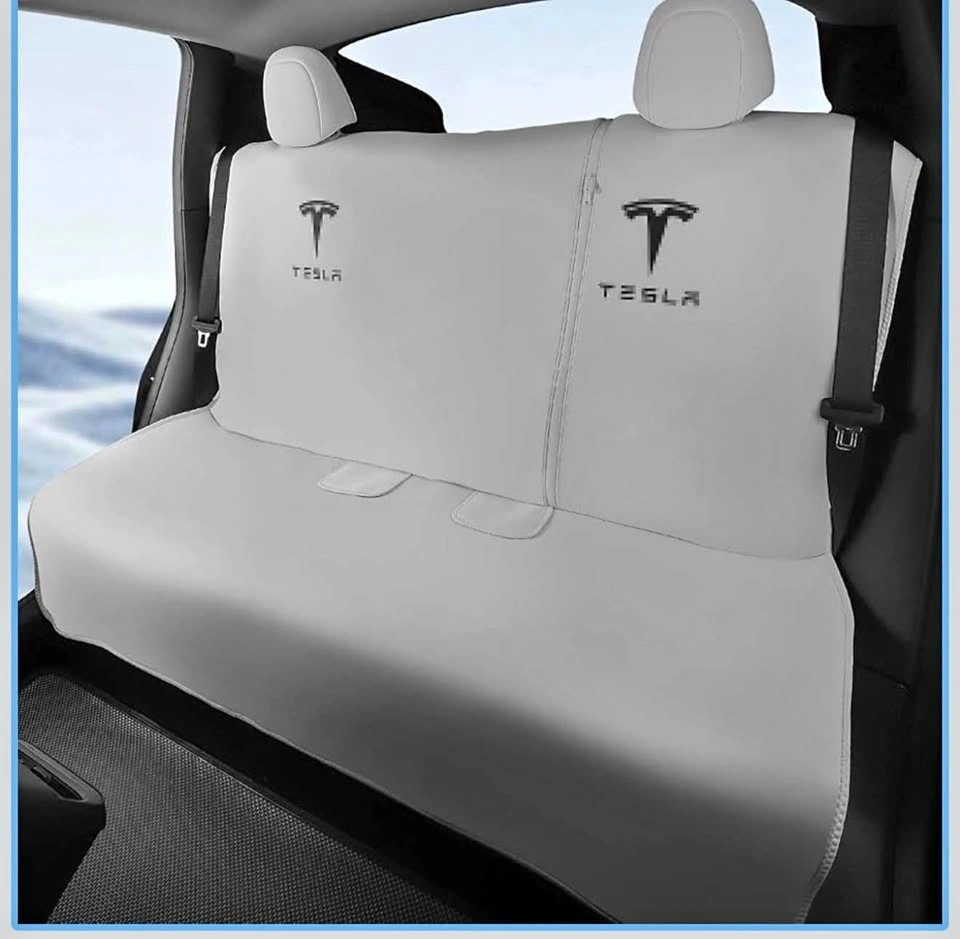 Protector covers kit for Tesla Model Y rear seats. Made of Neoprene, these covers are waterproof and resistant to sweat, odors, spills, and pet messes. They are also odor-resistant and easy to clean.