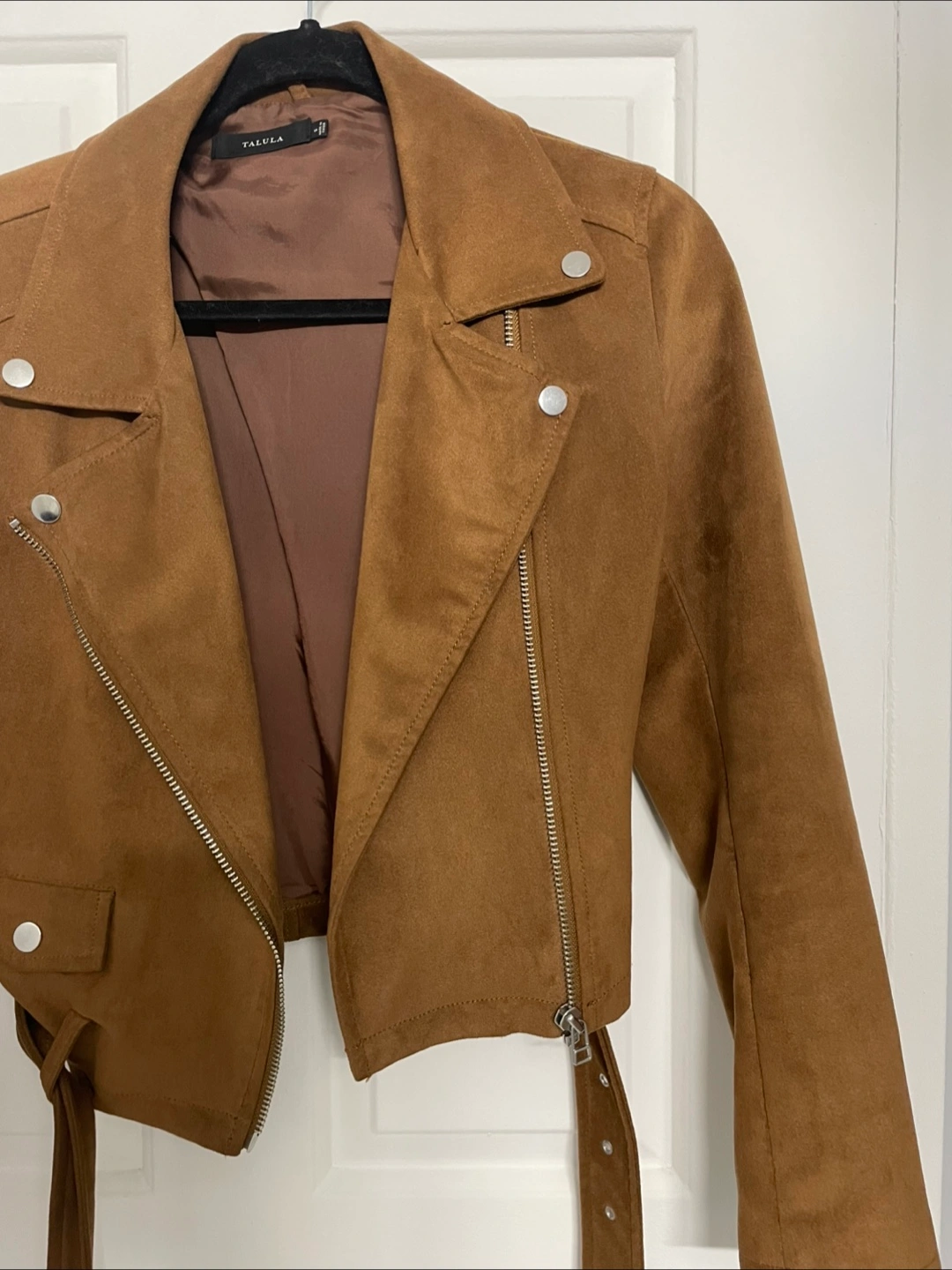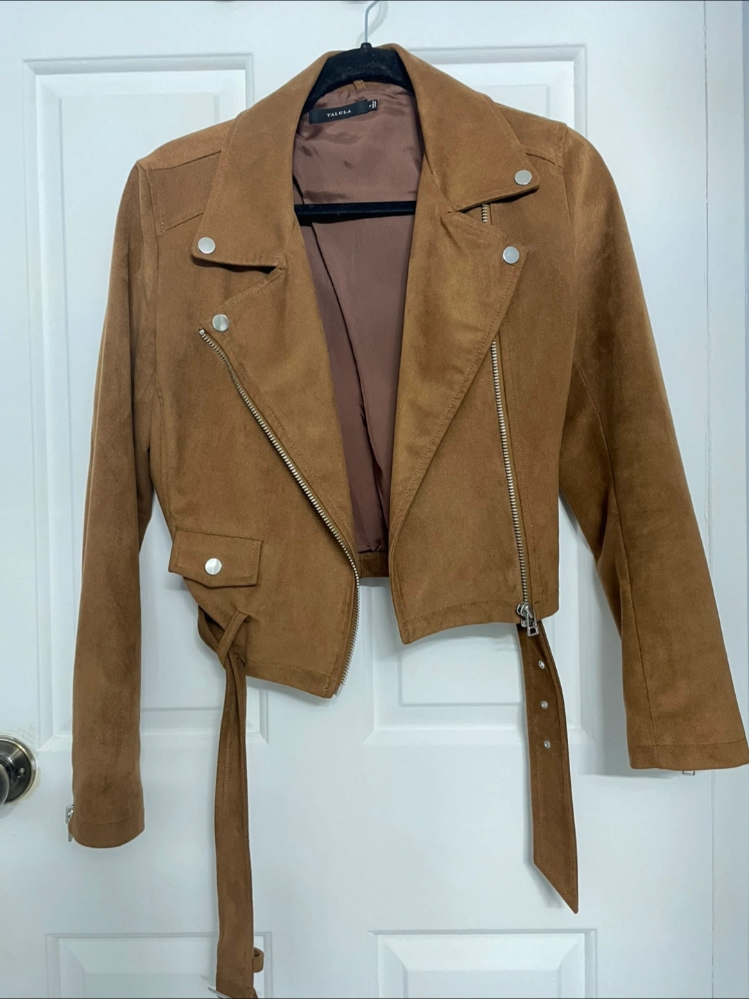 Brown suede Talula biker jacket. Silver zippers and snaps. Size small, fits true to size. Excellent condition, no flaws or damage. Perfect for Fall!