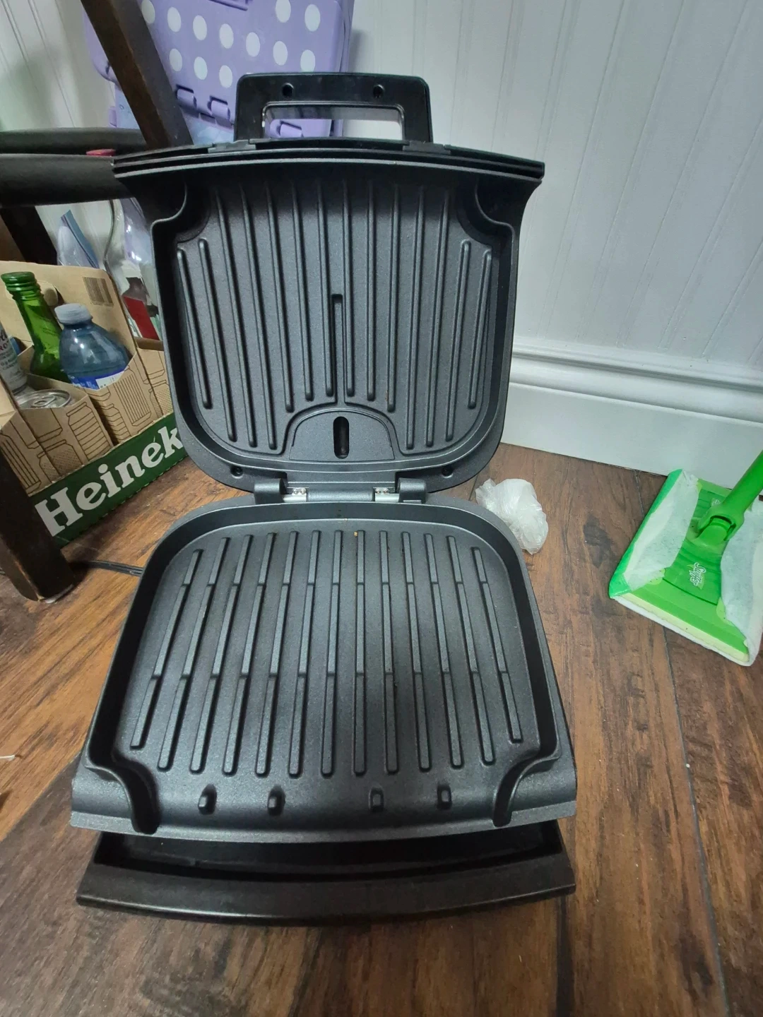 This T-fal contact grill features an advanced charcoal filtration system that removes up to 69% of grilling odours. It has non-stick coated plates and a removable drip tray that's dishwasher safe. It's great for indoor grilling any time of year!