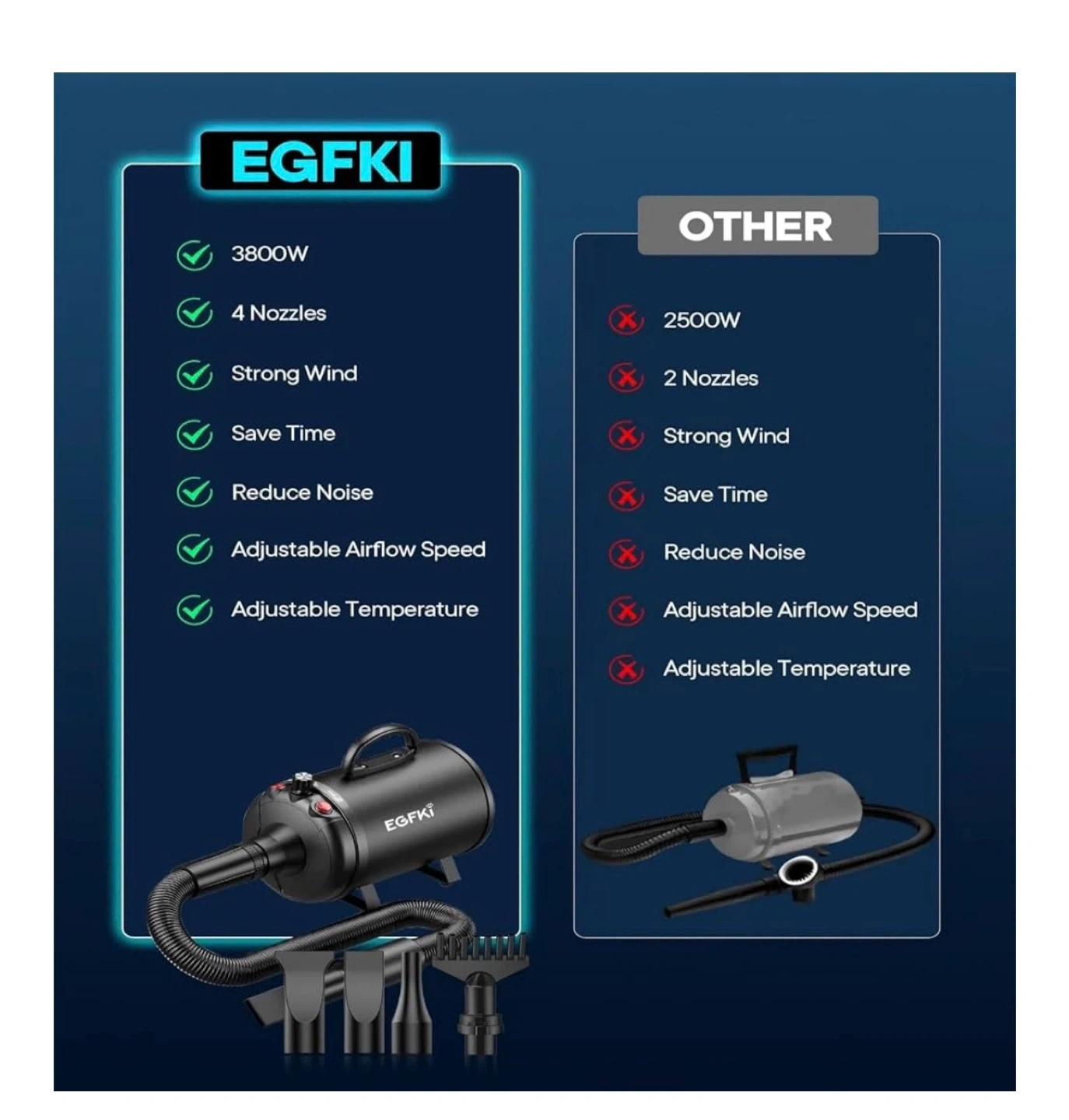 EGFKI Dog Dryer, 5.2HP/3800W Pet Grooming Blower