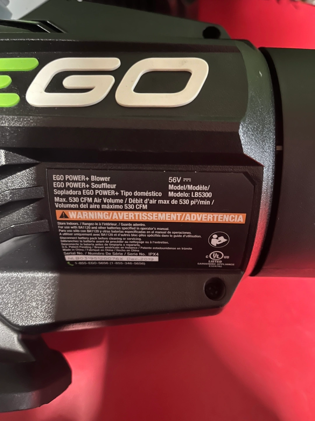 289EGO Power+ LB5300 Turbo 56-Volt 530 CFM Cordless Leaf Blower, 2.5Ah Battery and Charger Included