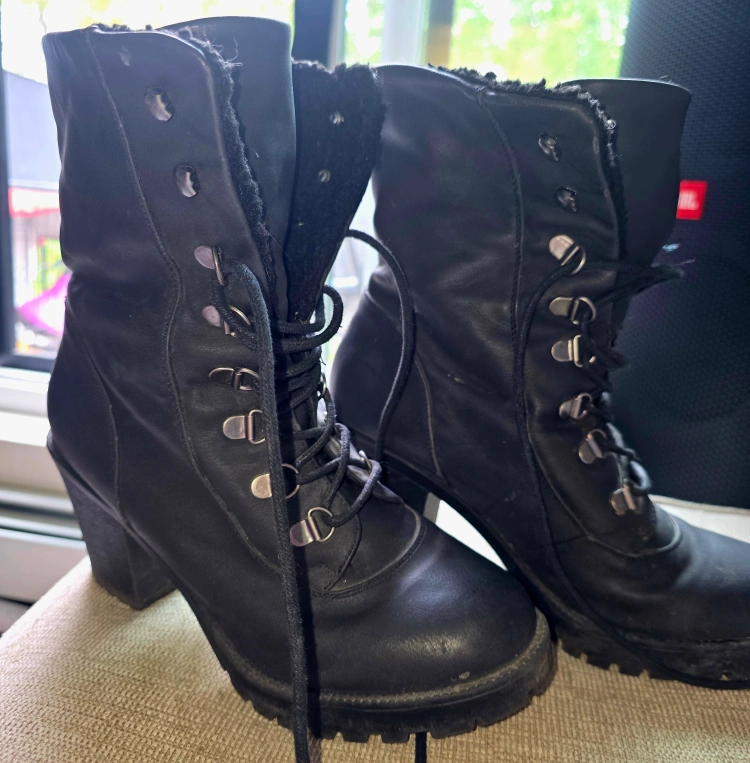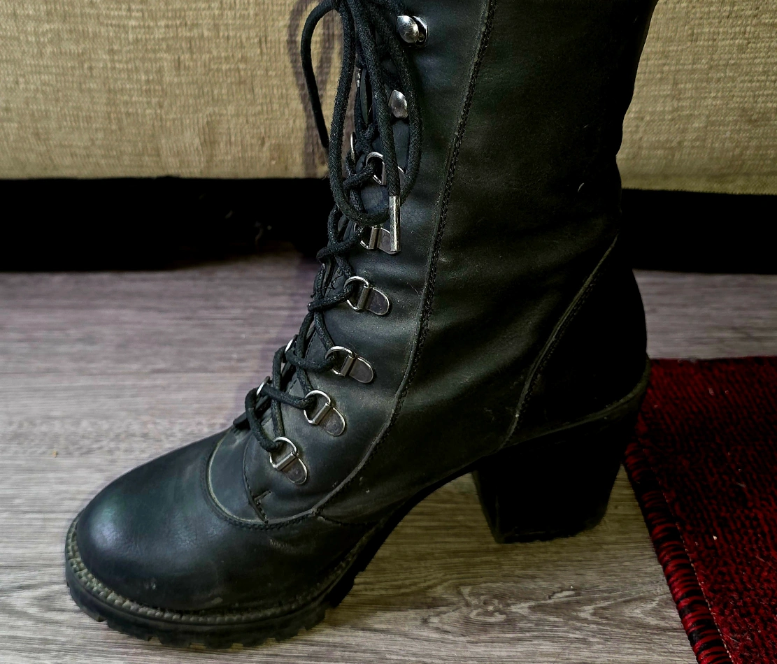 86Selling a pair of black lace-up boots from Ego Shoes. They're in good condition and have a bit of a heel. Perfect for adding a bit of edge to your outfit!