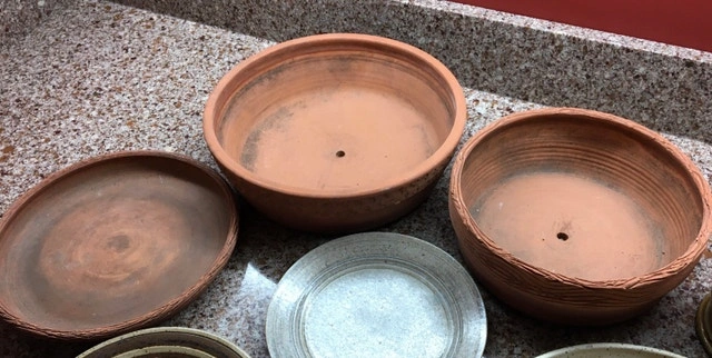 Several pieces of local vintage pottery including a serving platter, decorative plates, and plant pots. Excellent condition. Let me know if you're interested!