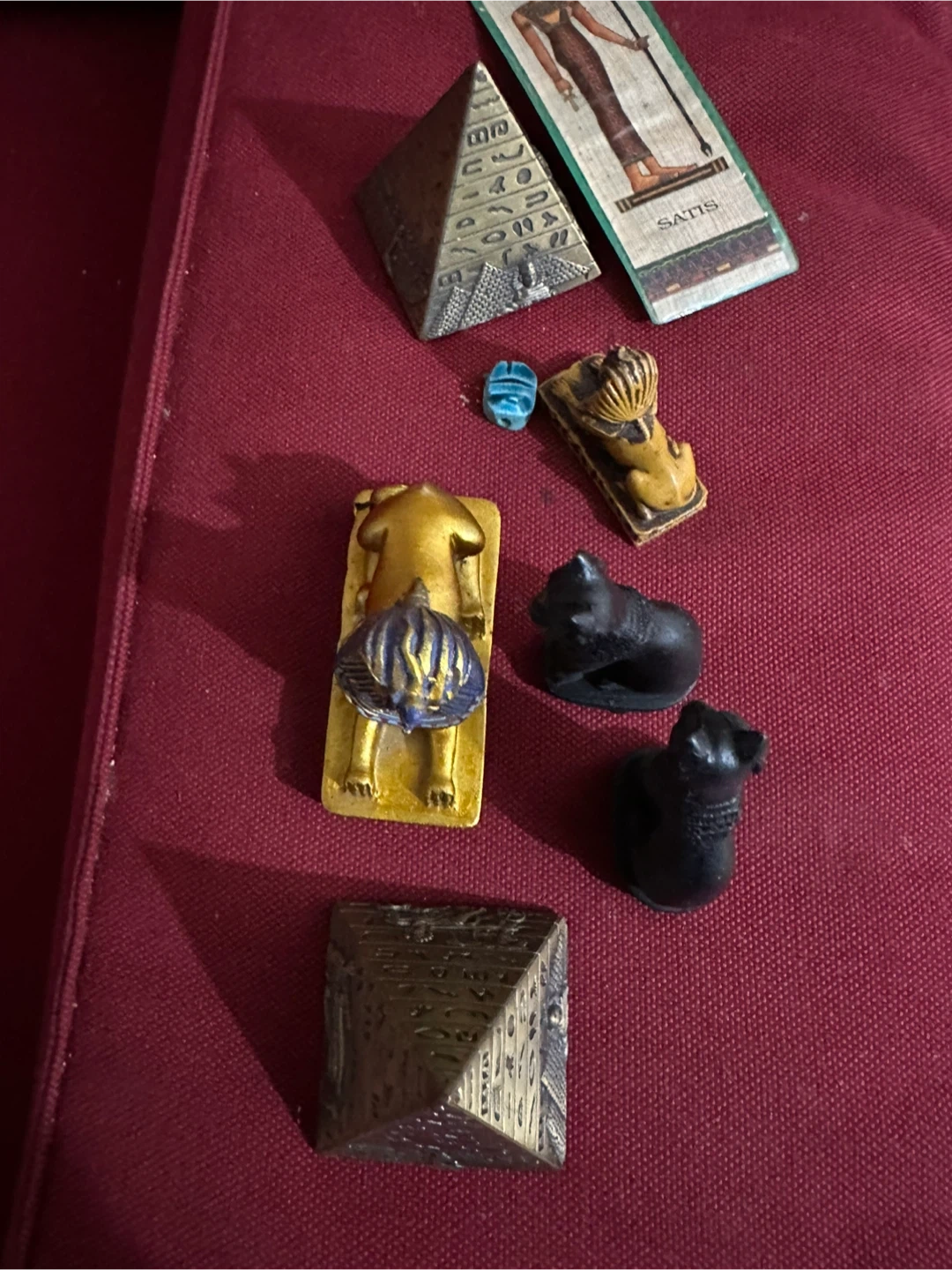18Selling a collection of Egyptian souvenir figurines. Includes pyramids, pharaohs, and cats. Great for collectors or as decorative pieces!