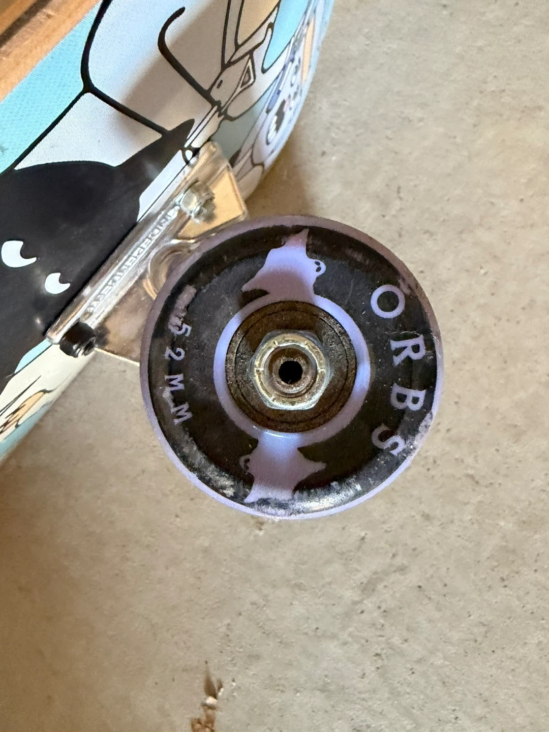 75Selling a used Eh-Ok skateboard! It has Orbs wheels and is ready to ride. The wheels are 52mm. It has some wear and tear from use, but it's still in good condition for cruising around the neighbourhood or hitting up the skate park