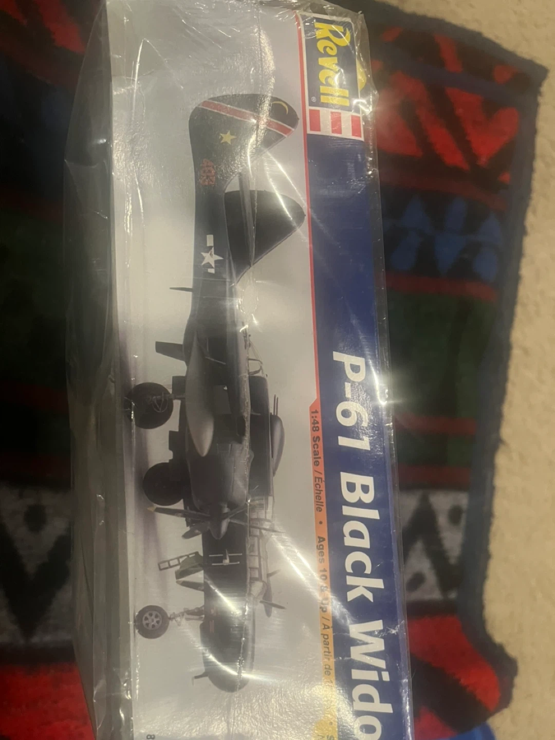 This is a Revell P-61 Black Widow model kit in 1:48 scale. It's recommended for ages 12 and up. The kit includes detailed parts for assembly. Paint and glue not included.