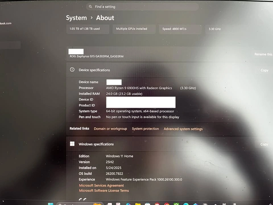 ASUS ROG Zephyrus G15 RTX3060 24GB RAM 1TB SSD