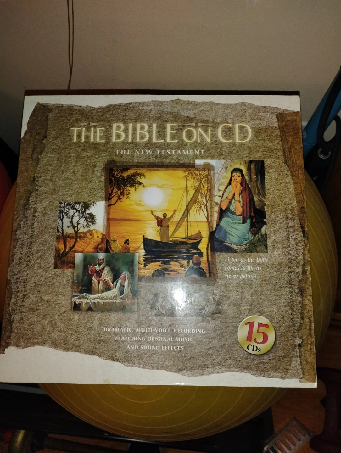 Selling a CD set of The Bible on CD - The New Testament! This set includes 15 CDs featuring dramatic, multi-voice recordings with original music and sound effects. Listen as the Holy Bible comes to life as never before!