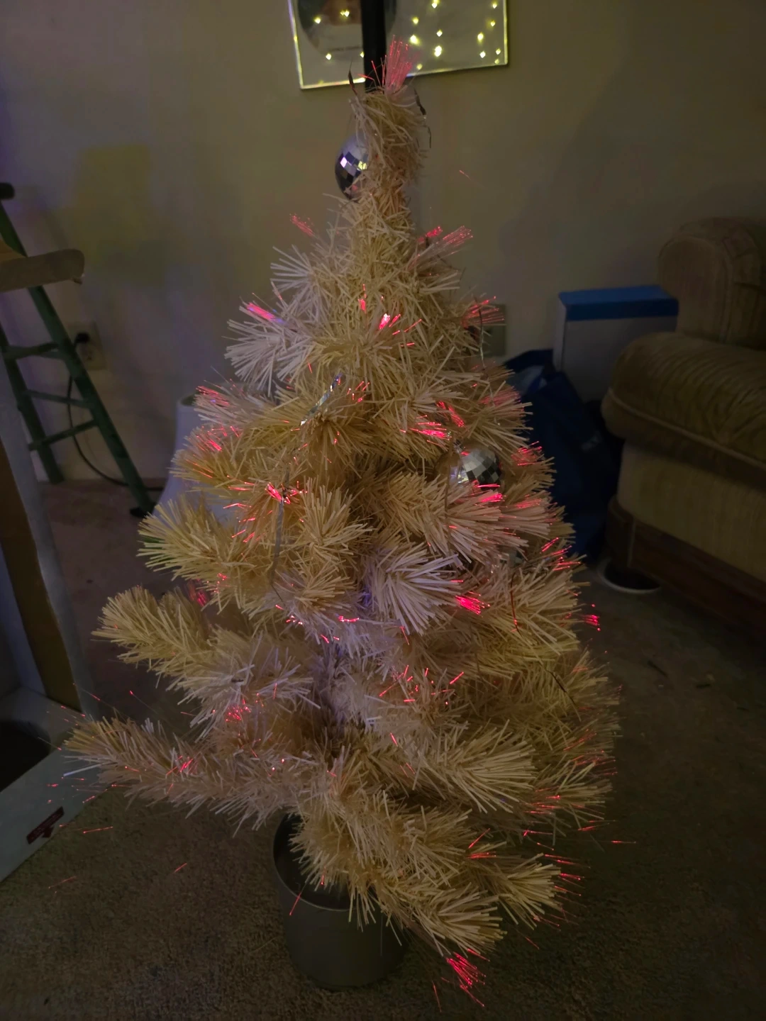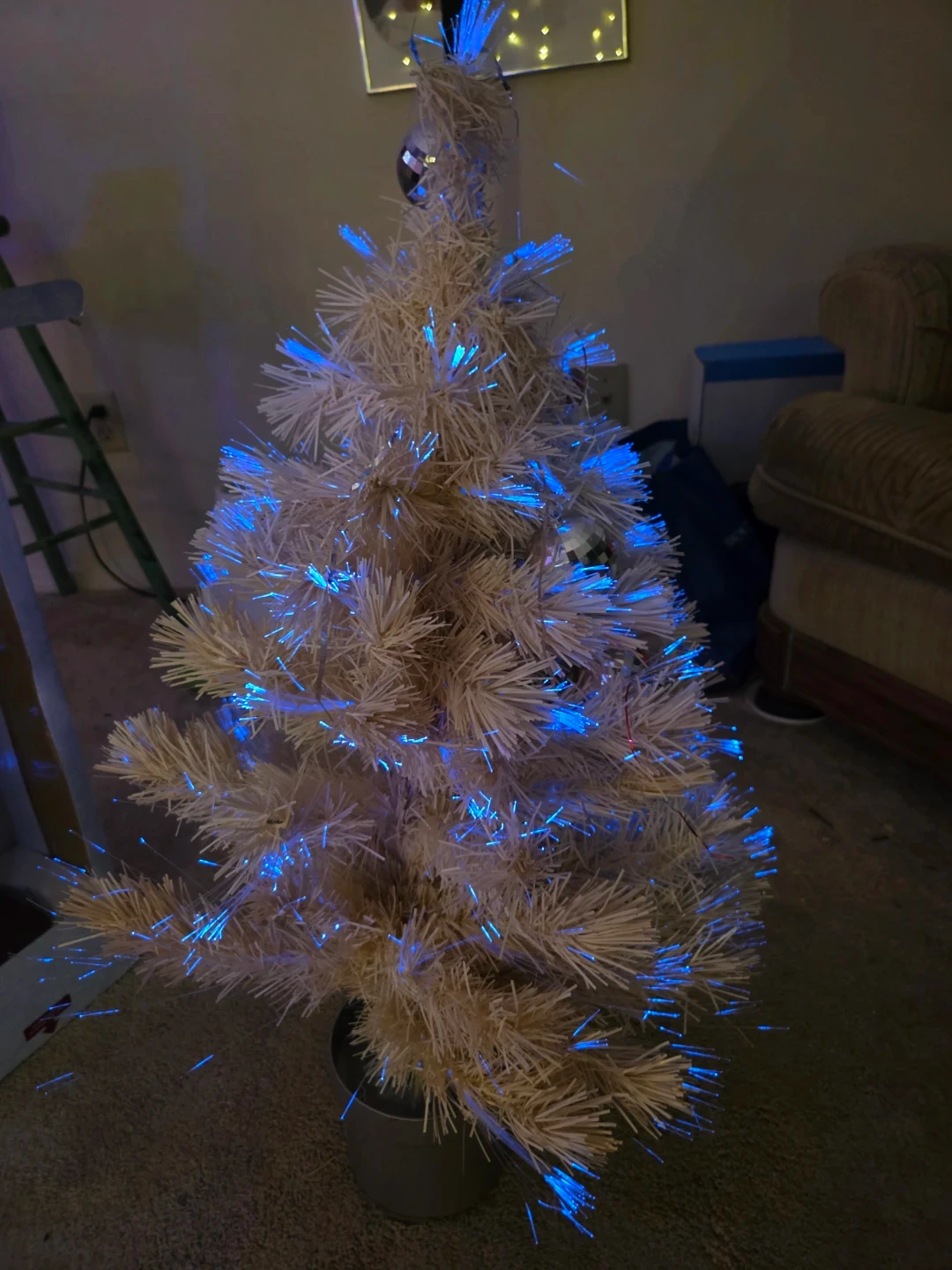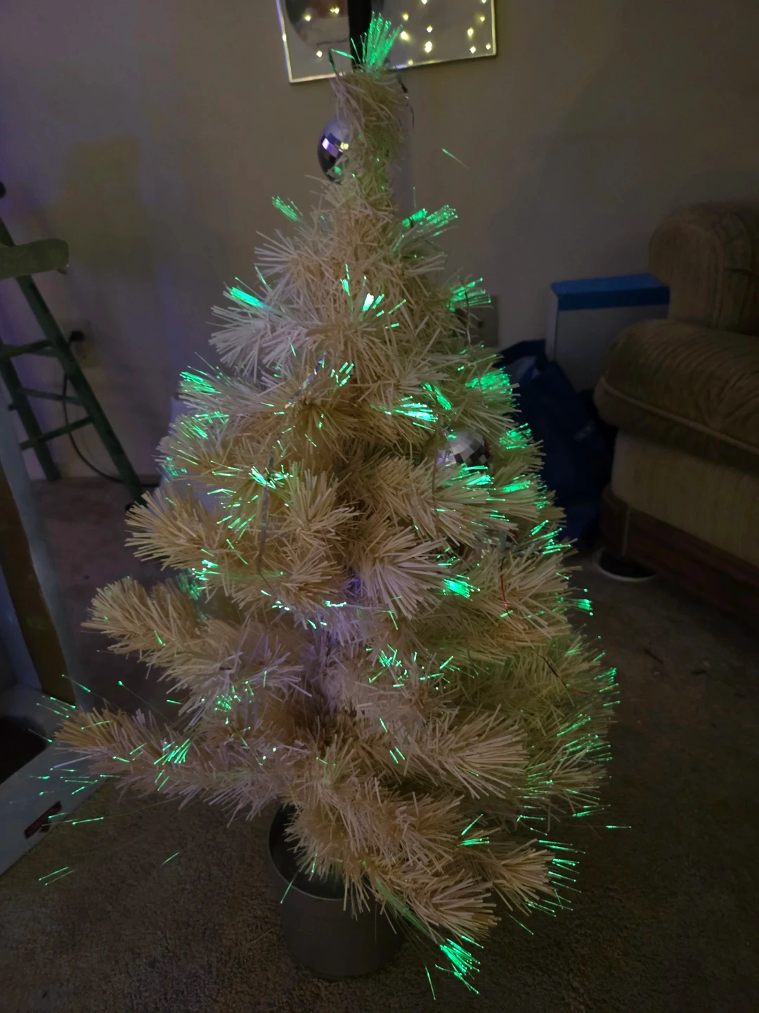 Here's a small fibre optic white Christmas tree! The lights change colours to add a festive touch to any room during the holidays