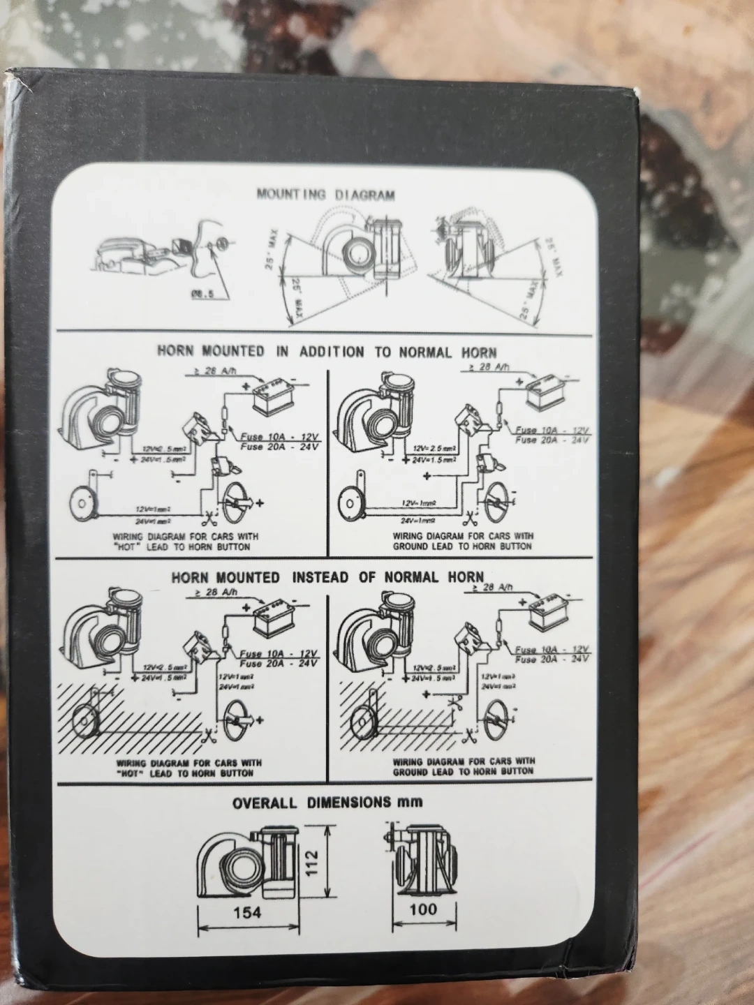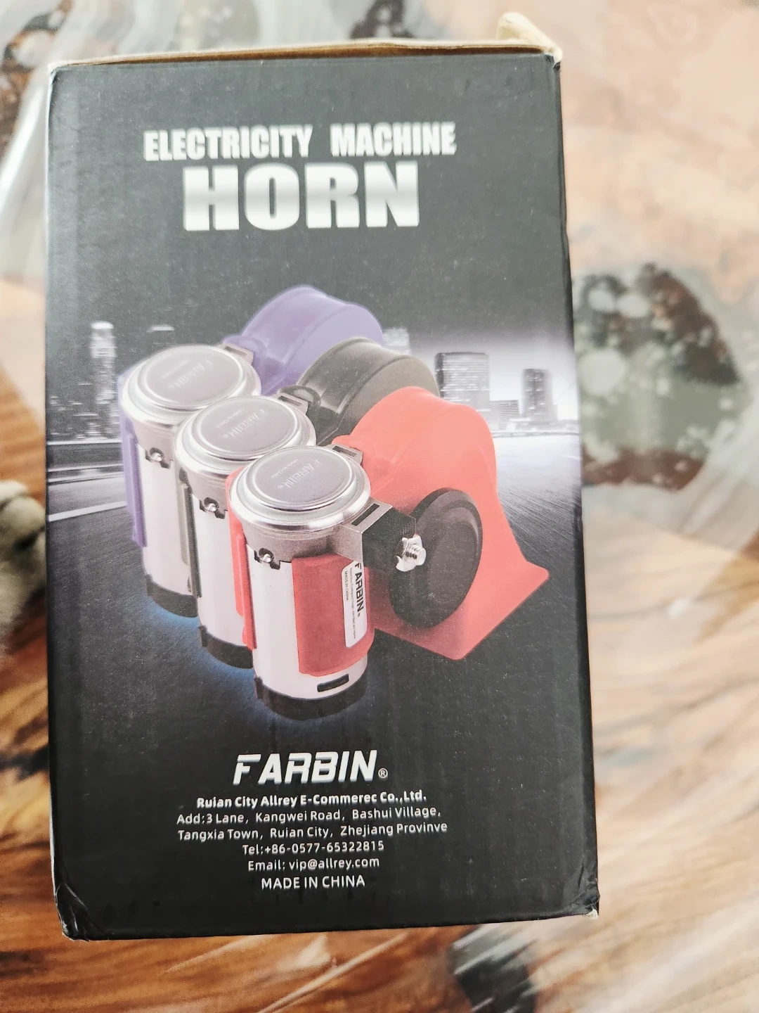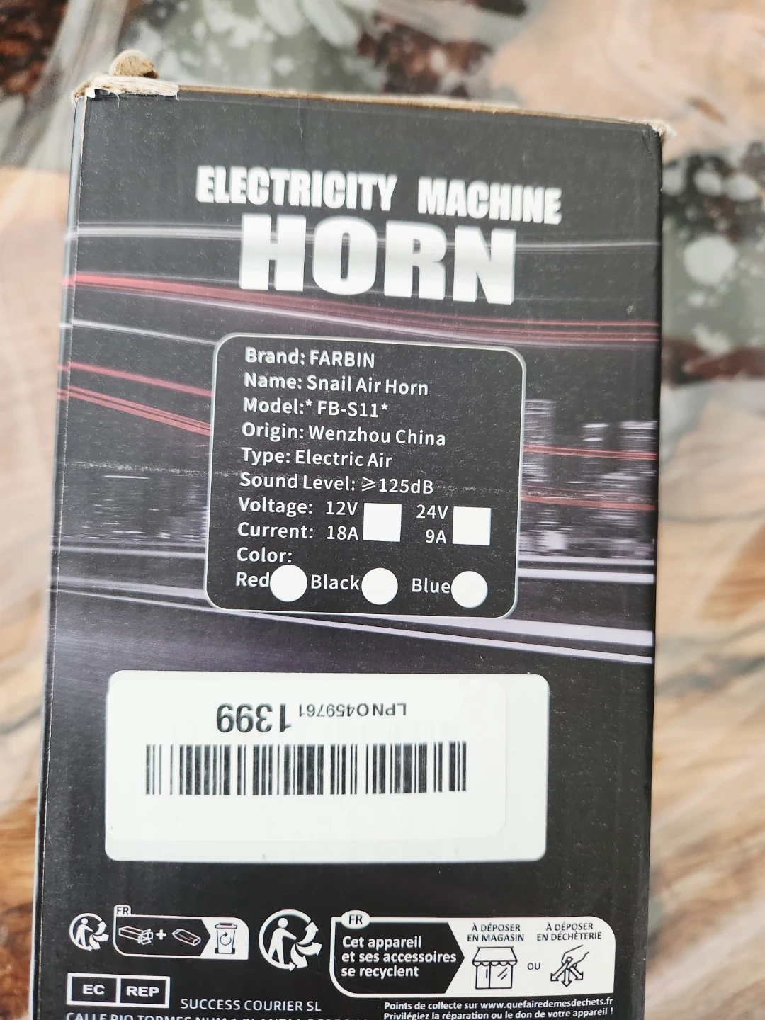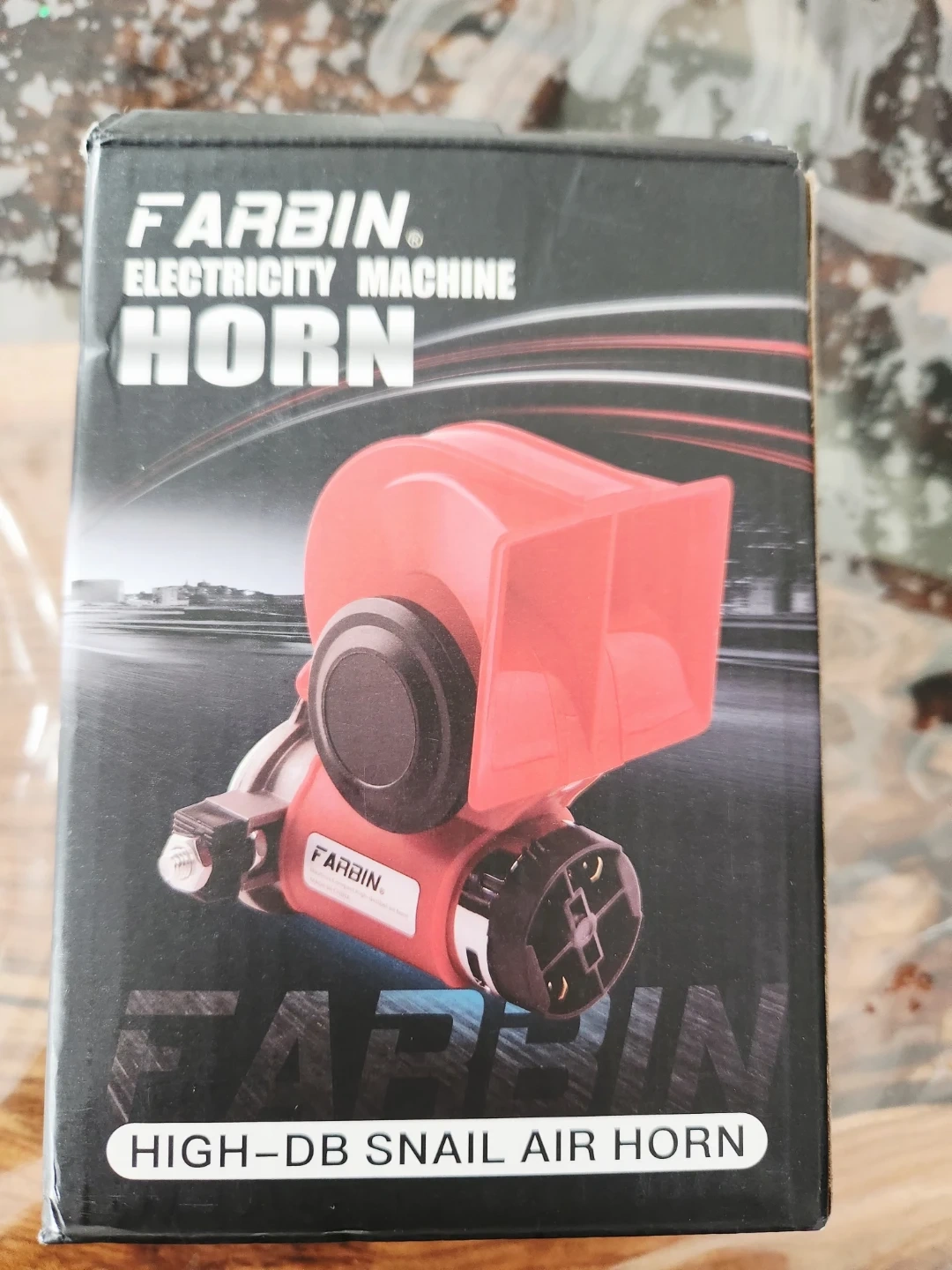 This FARBIN Snail Air Horn is an electric air horn. It has a sound level of ≥125dB. Available in 12V and 24V models with current ratings of 18A and 9A respectively.