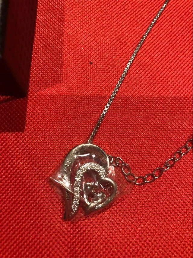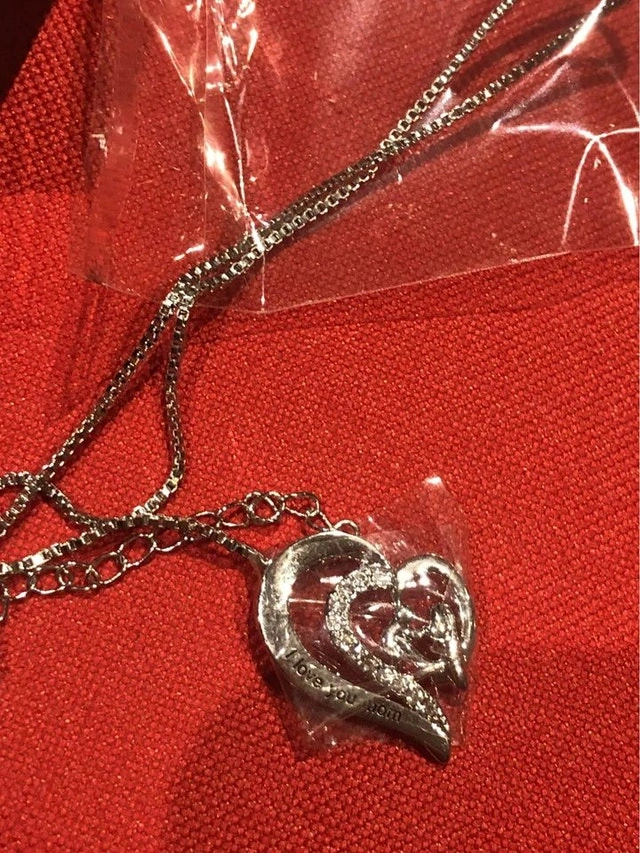 "I Love You Mom" pendant and chain. Includes a gift box. Sparkly and pretty. Only $5 for one or 2 for $8! Priced low because we're clearing stock from a previous business. Please see my other ads!