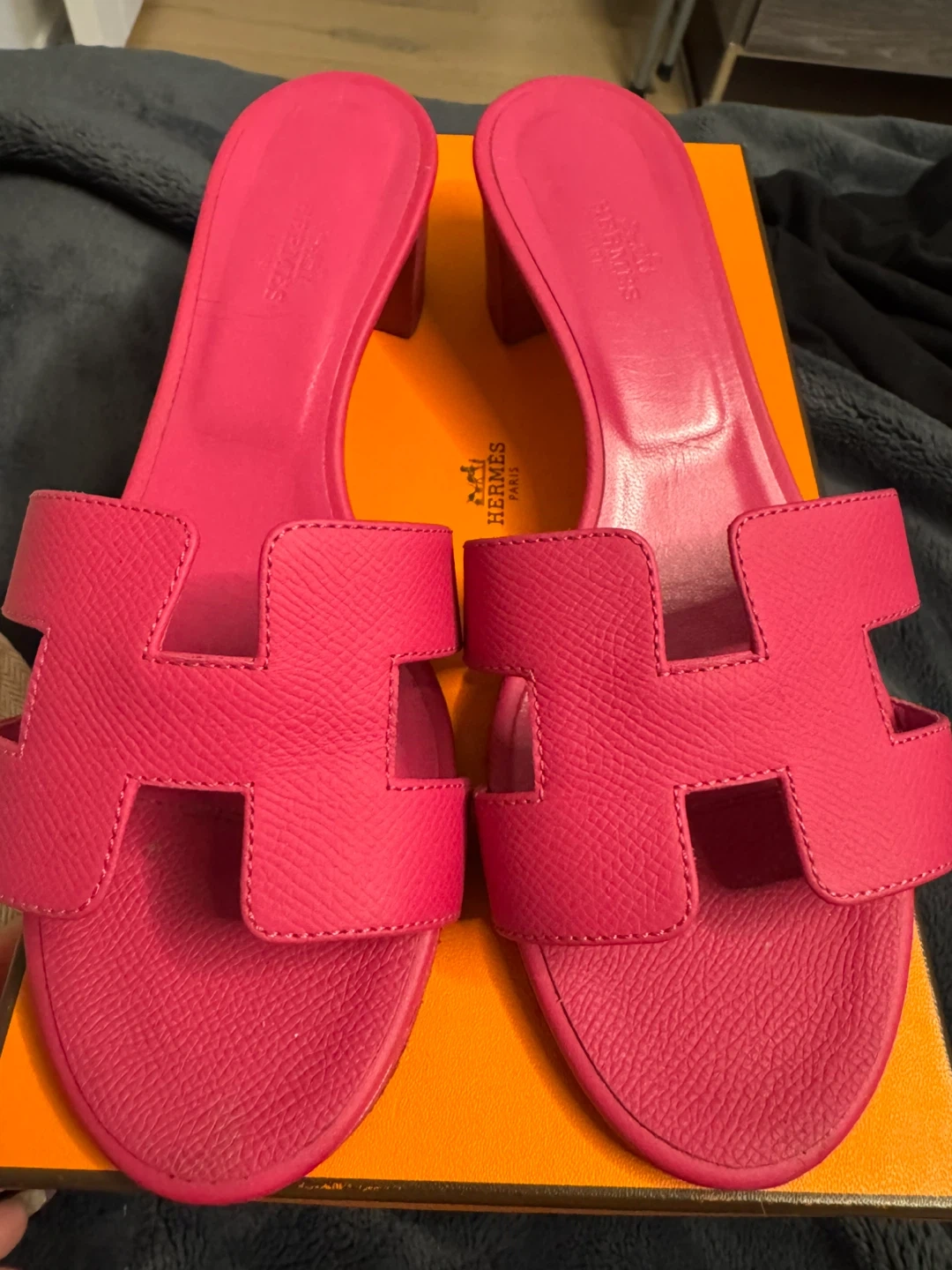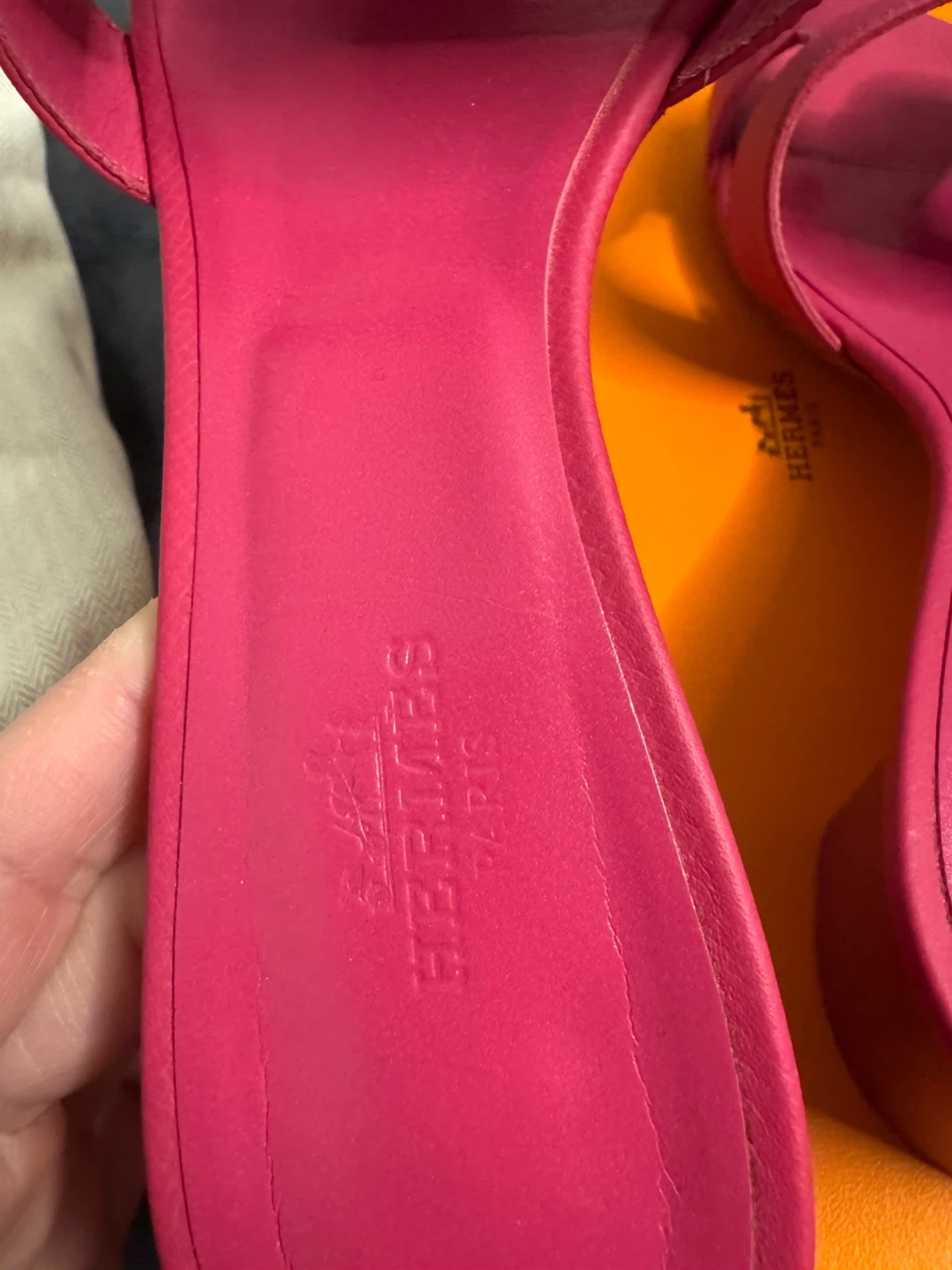 High heel sandal in suede goatskin with iconic "H" cut-out.
