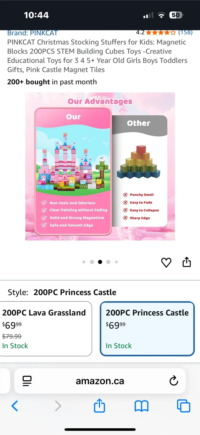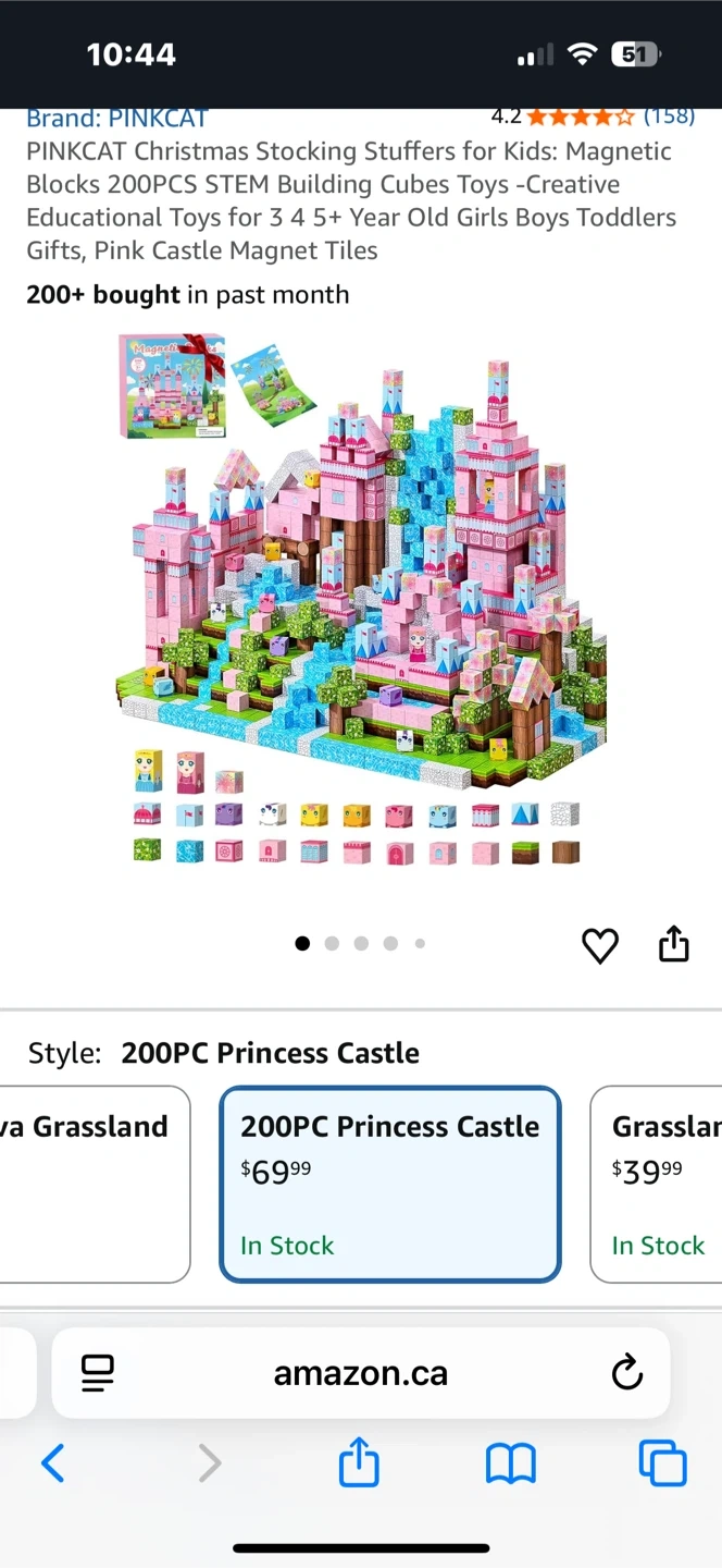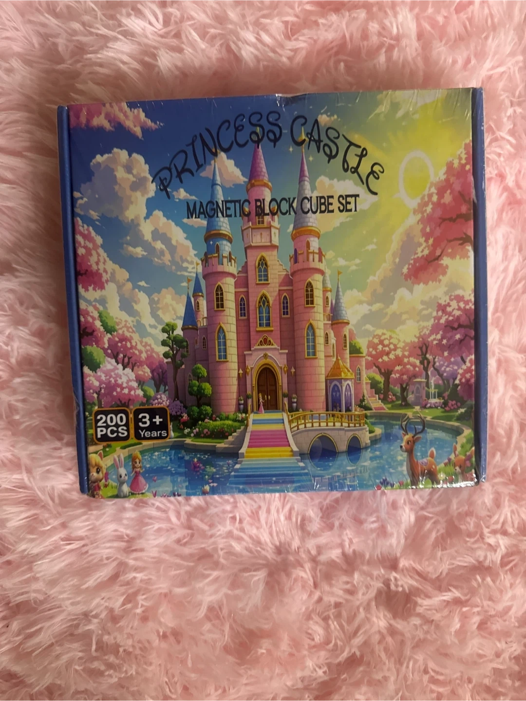 PINKCAT magnetic building cubes for STEM play. Includes 200 pieces in a princess castle design. Great for creative building and fine motor skills. Recommended for ages 3+.