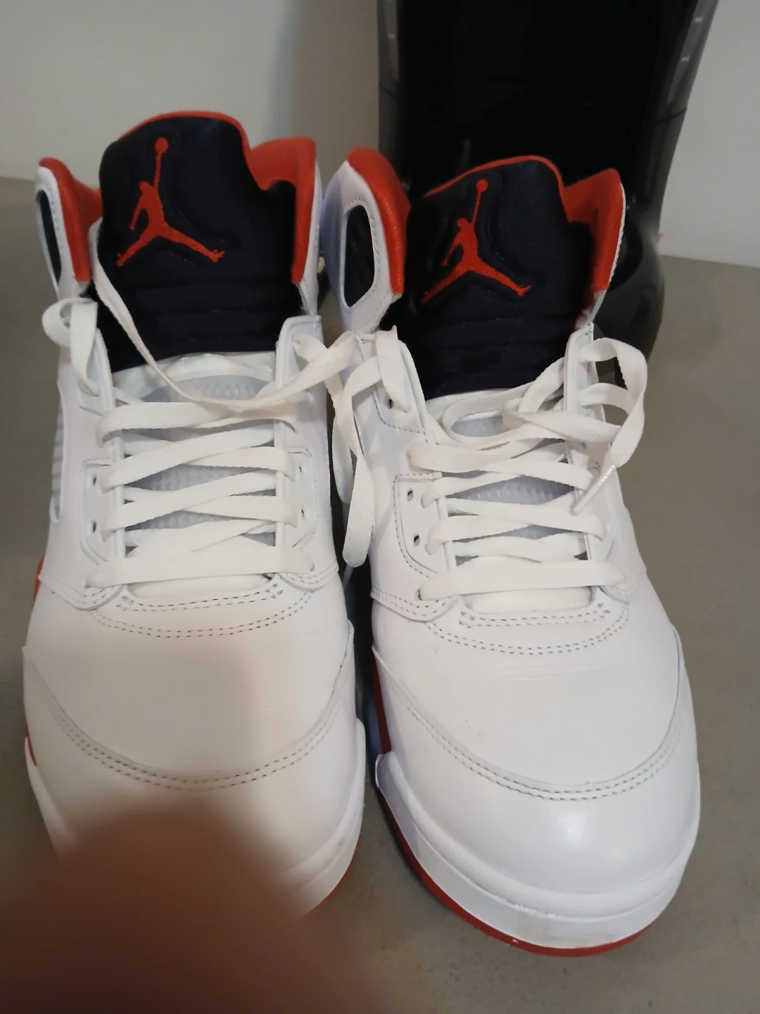 Selling A Pair Of Nike Air Jordan 5 Retro OG Fire Red Sneakers. They are A US Men's Size 10.5, EUR 44.5, and 28.5 cm. Comes With The Box And Clear/Red Shoe Trees. Only Worn Once. *SERIOUS INQUIRIES ONLY*
