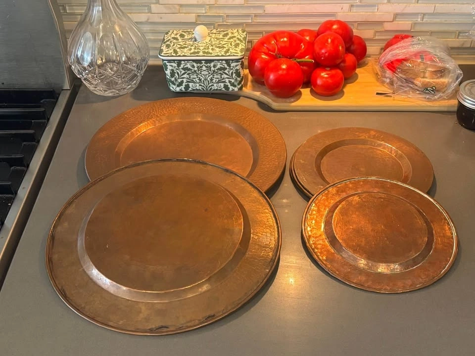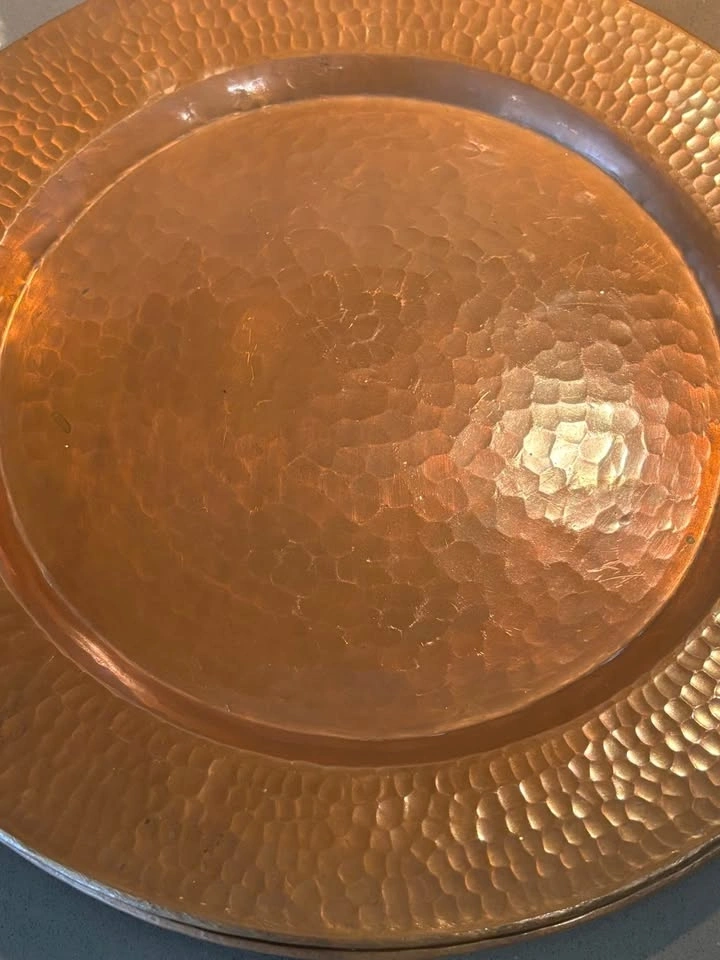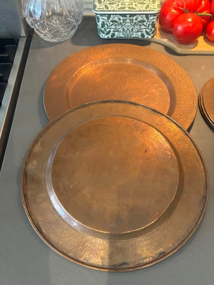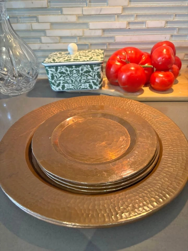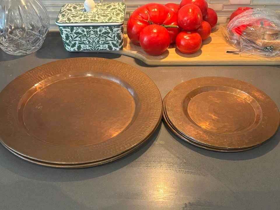 Vintage Hammered Copper Charger & Plate Set - 7pc