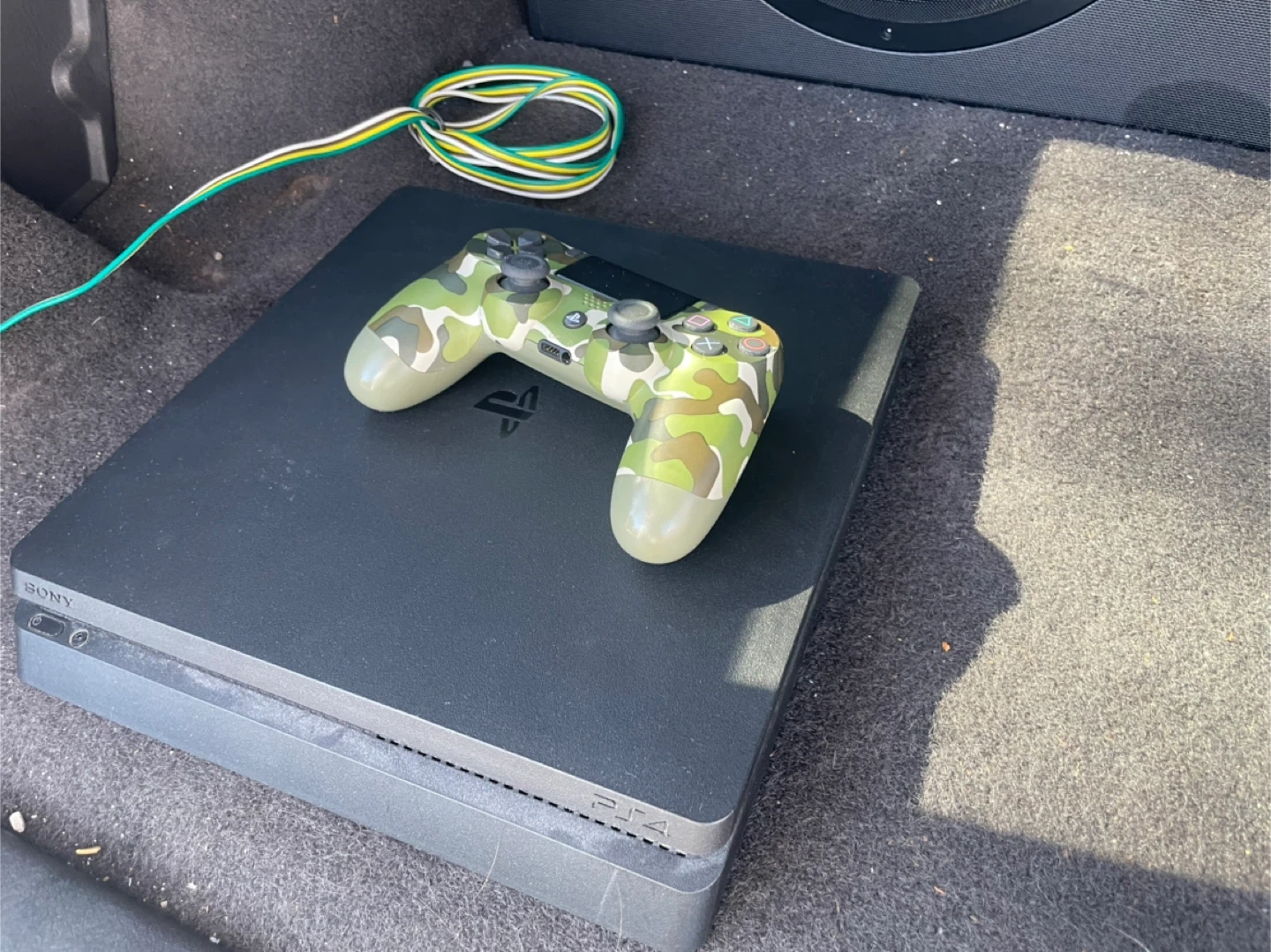 This is a Sony PlayStation 4 Slim console. It comes with a camouflage DualShock 4 and all cords (hdmi and power)