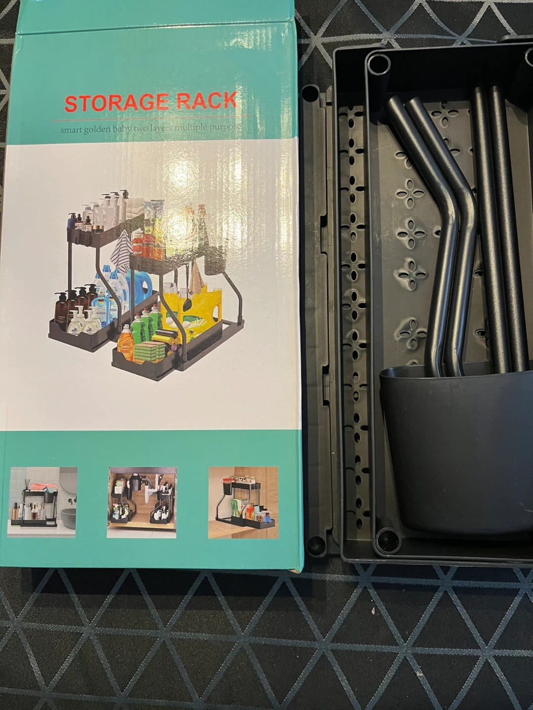Smart golden baby two layers multiple purposes storage rack. Hollow design for drainage. Rustproof carbon steel tube. Easy to assemble with no tools! Brand new. Pick up only.