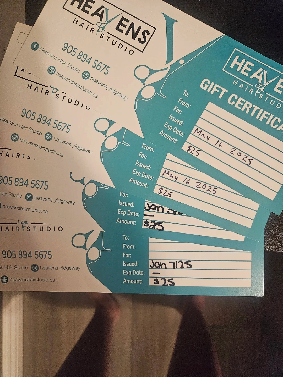 4 $25 gift certificates for Heavens Hair Studio are available.