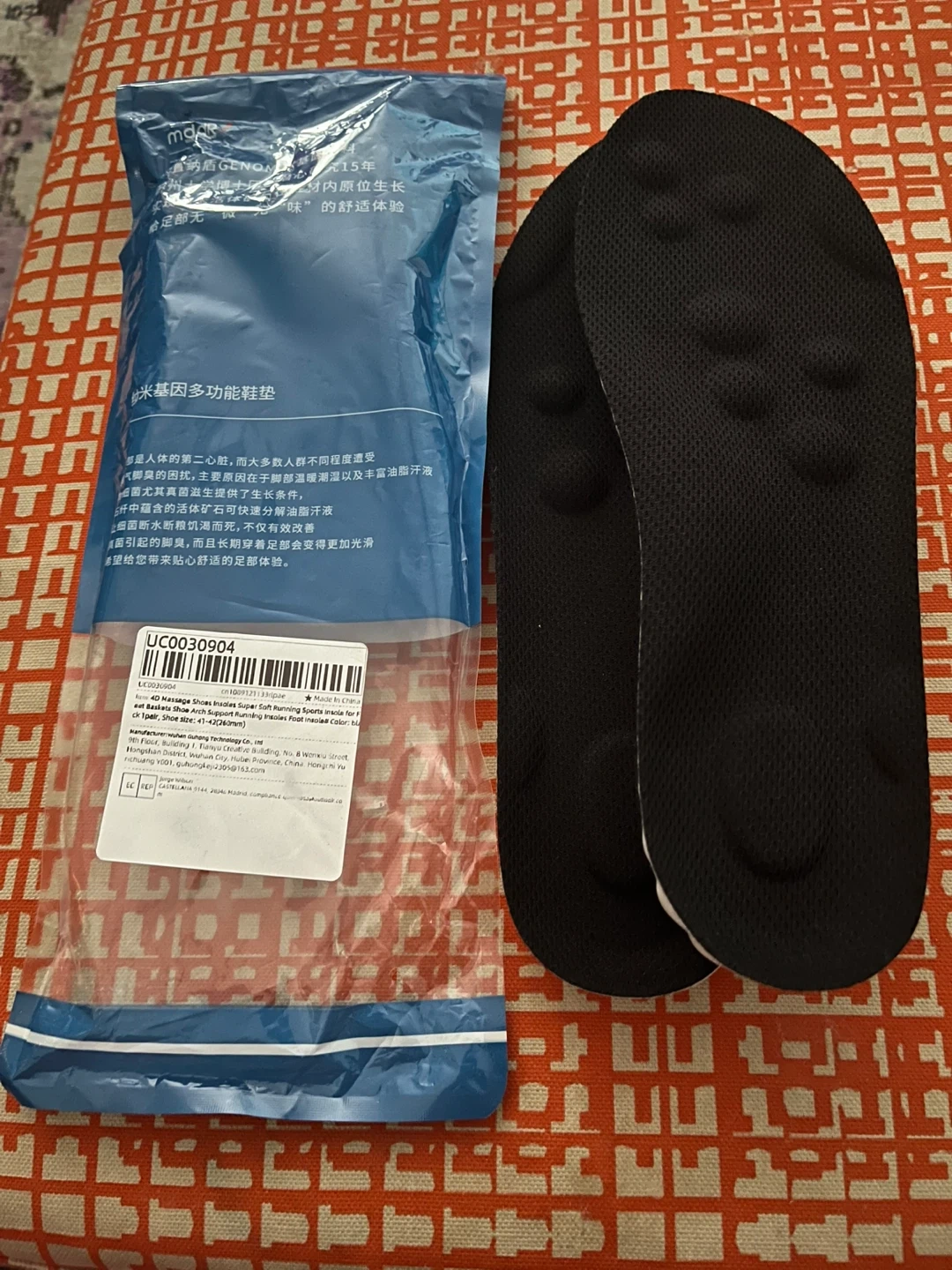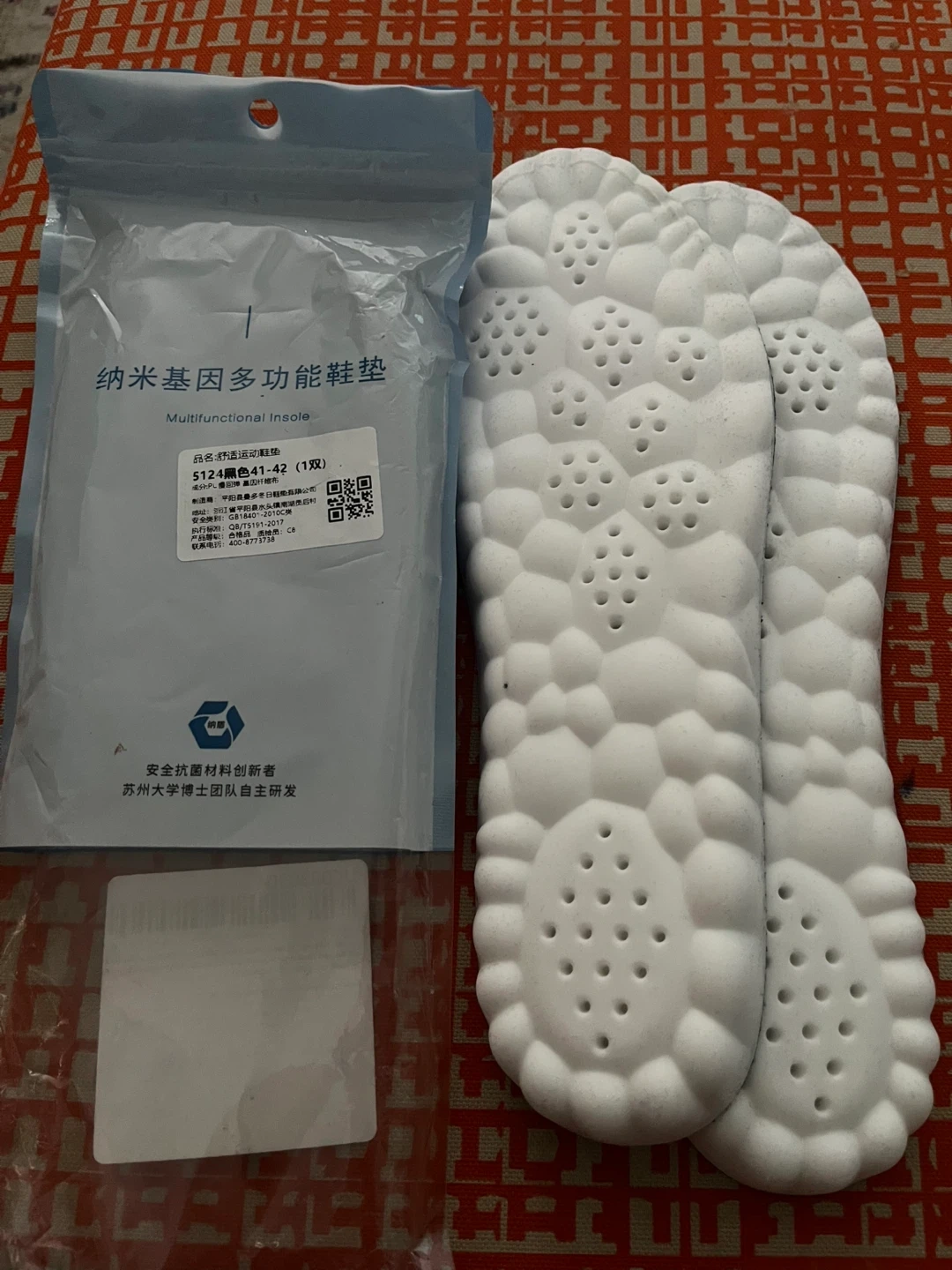 These insoles are designed for comfort and support. They feature a unique textured surface with air holes for breathability. They come in a size 41-42, suitable for many shoe types. These are great for anyone looking to add extra cushioning to their footwear!
