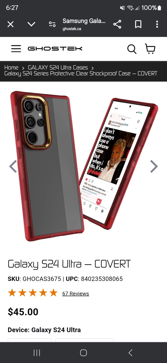 Brand new, never used Samsung S24 Ultra Ghostek Covert Case in Red/Clear with Gold highlight around the camera cutout. Sold out on the Ghostek website and it's a "Limited Edition " with only 100 made. See pictures with proof.
