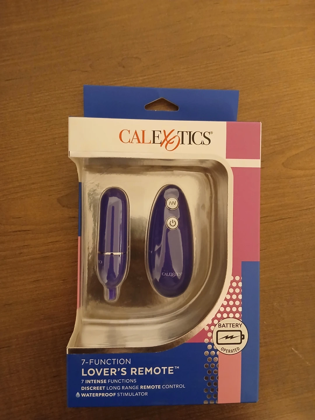 This is a 7-function lover's remote. It's a compact and discreet purple stimulator. It's waterproof and battery-operated. Perfect for couples looking to spice things up in the bedroom. Brand new unopened in box.