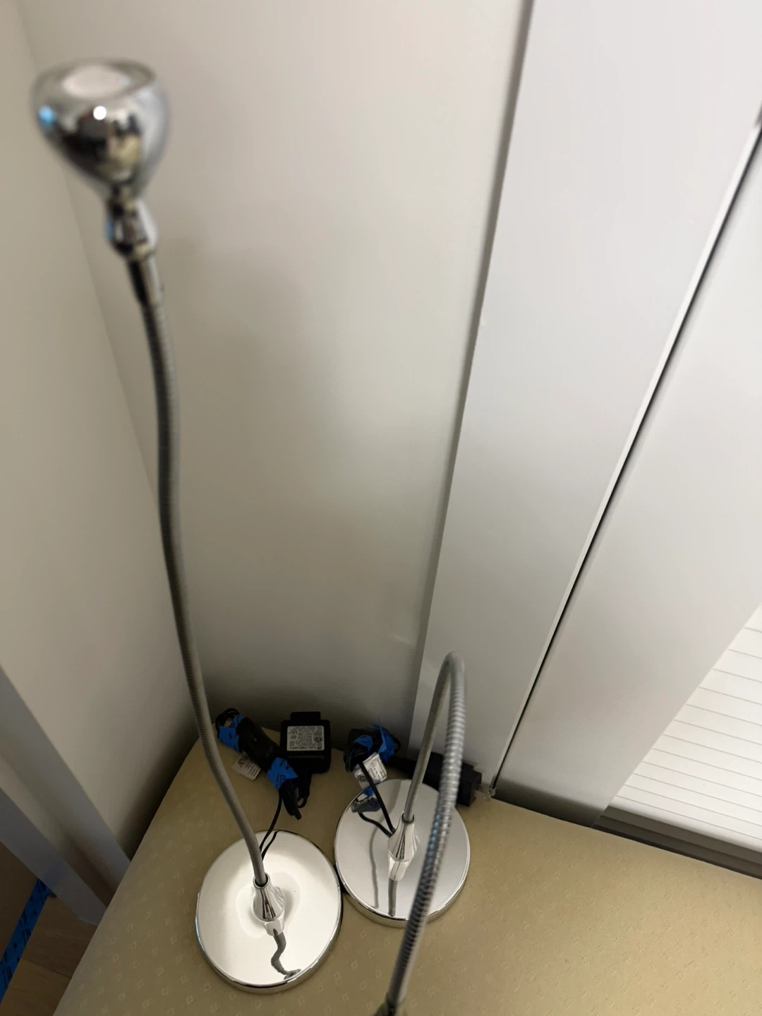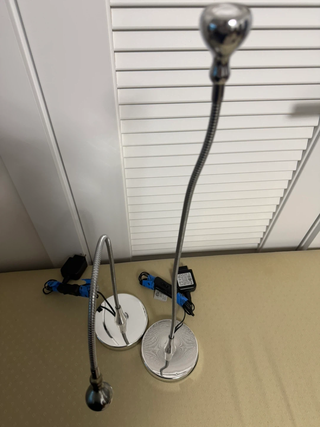 Pair of 2 flexible gooseneck desk lamps. Features a bright LED light. It includes a power adapter and a sturdy base. Perfect for any desk or workspace! $20.00 for both of them. $10.00 each!