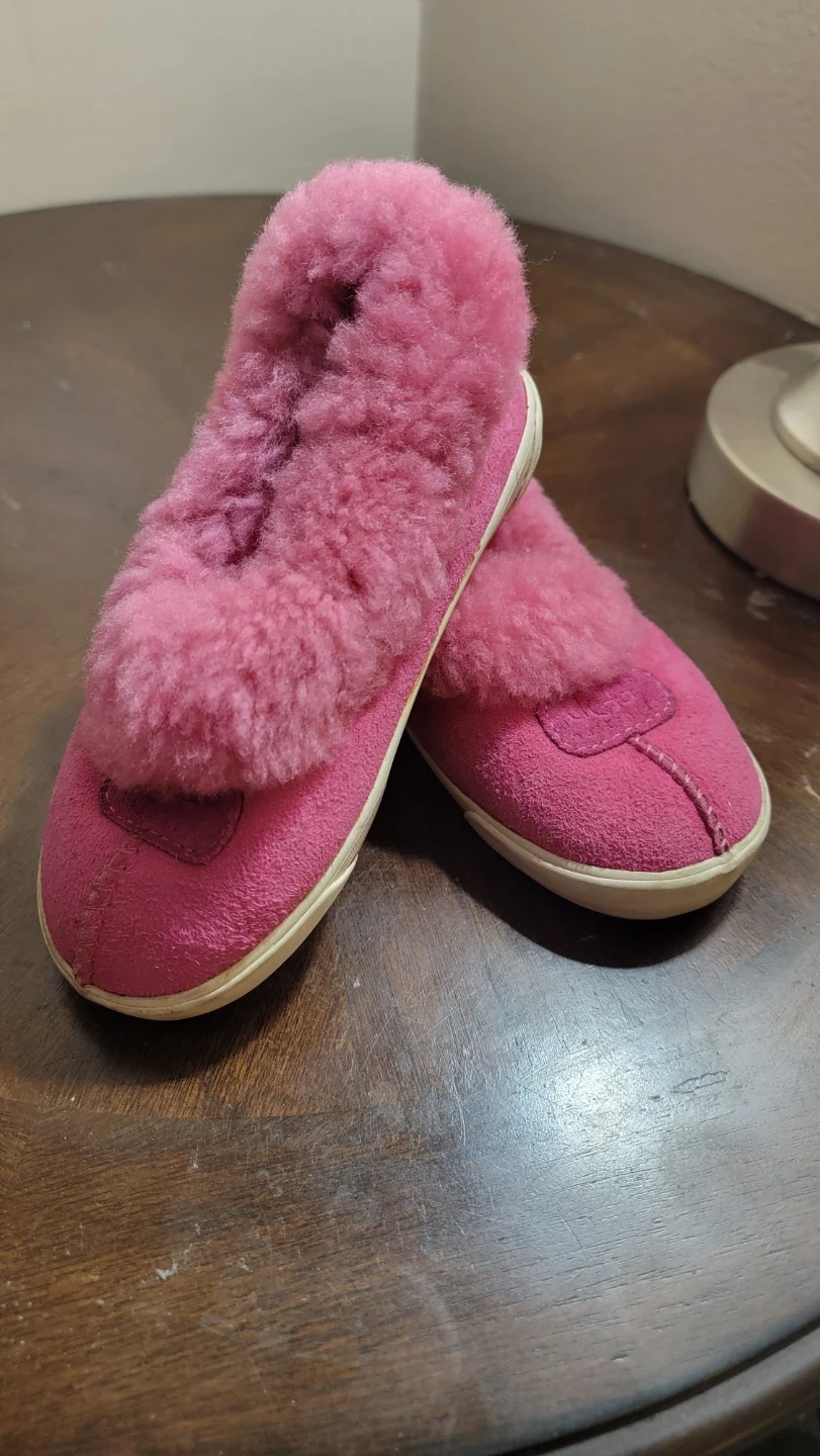 Pink UGG Australia Girls Size 10 Suede and Sheepskin Slippers