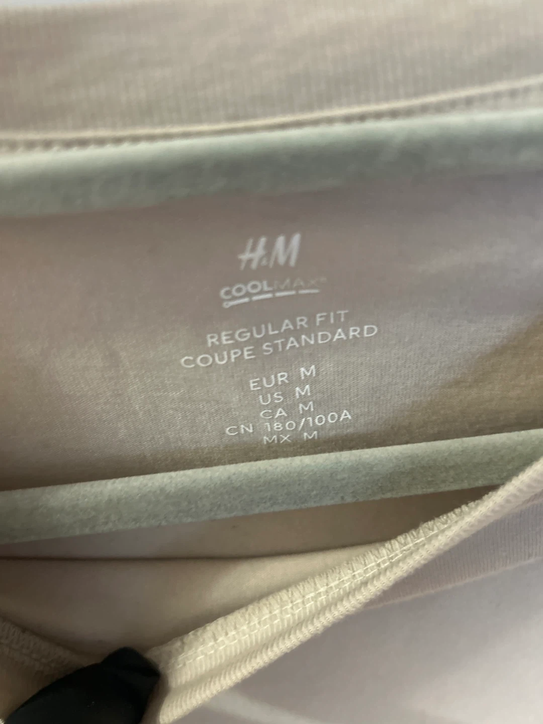 A beige H&M t-shirt with Coolmax technology. It's a regular fit in size M. The material is breathable and moisture-wicking, great for everyday wear or workouts!