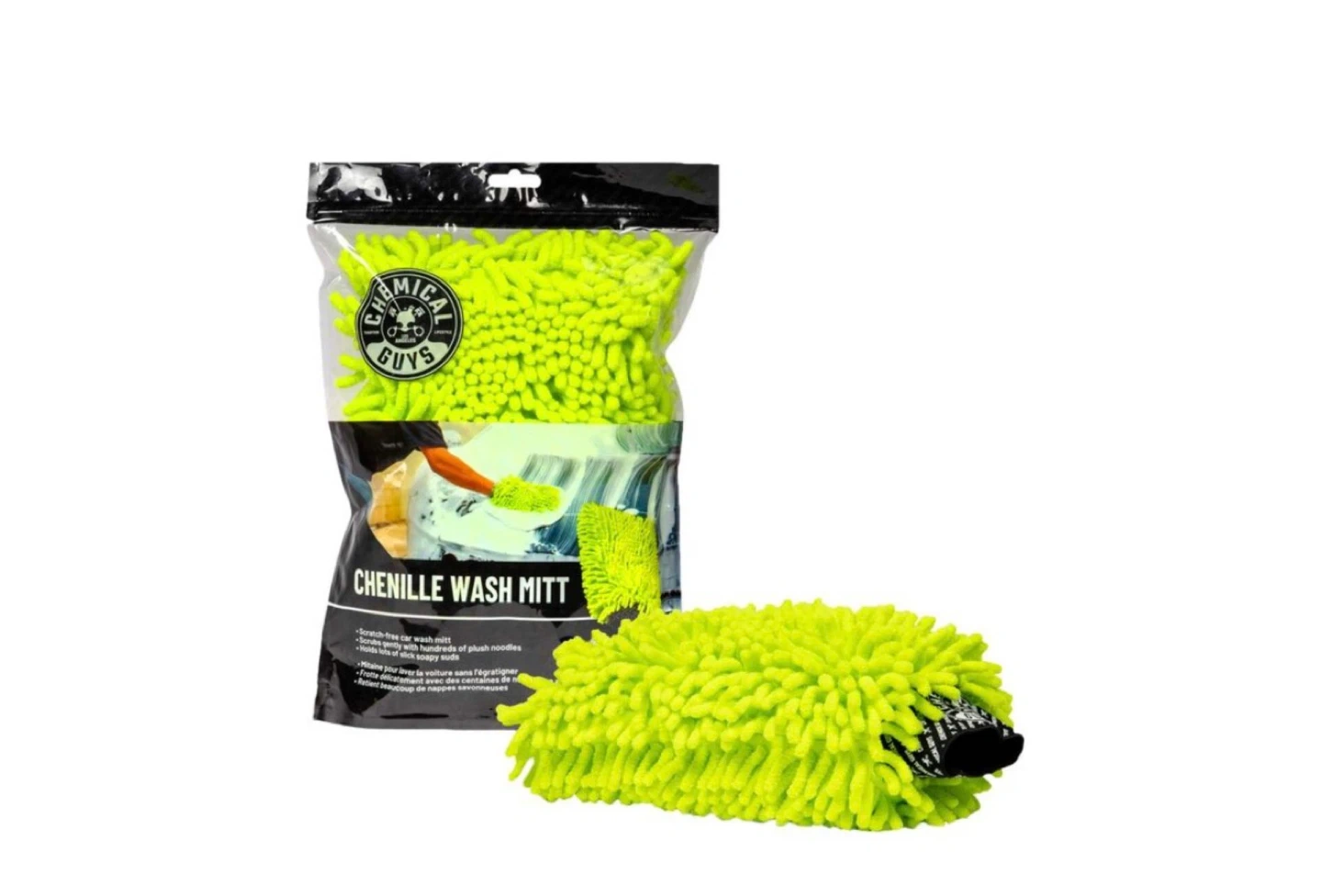 Ultra-soft Chemical Guys chenille wash mitt designed for a scratch- and swirl-free car wash. Perfect for safely cleaning your vehicle while holding tons of water and soap for a rich, foamy wash.