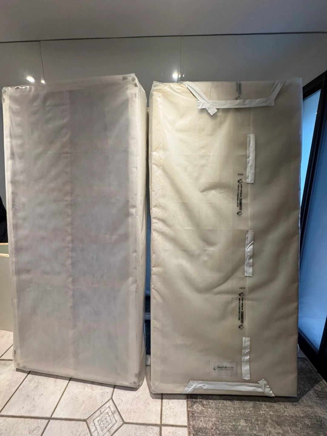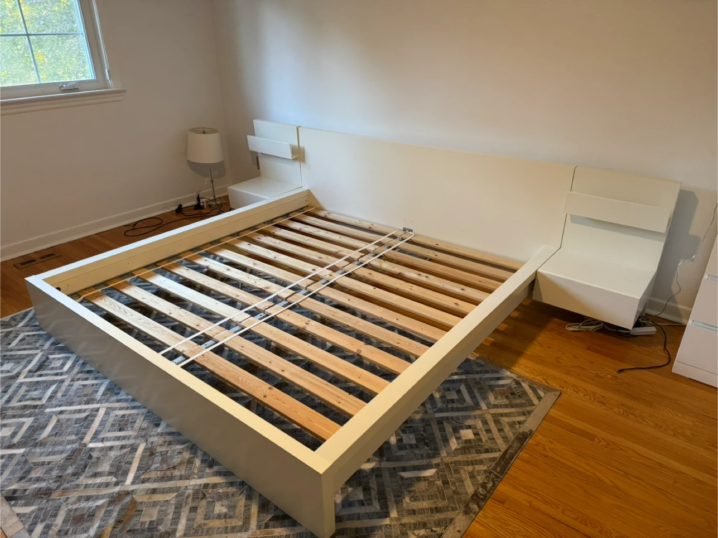 Nightstands are: 19.75” wide x 16.5” deep (each)