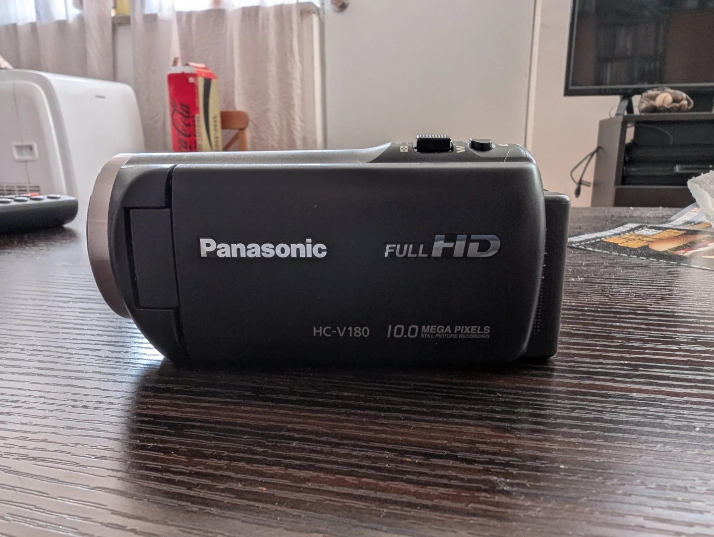 Panasonic HC-V180 Full HD camcorder with 10.0 megapixel stills. It features 28mm wide-angle lens and optical zoom f/2.0-103mm 1:1.8. This camcorder has a 90x zoom. In good working order. No charger.