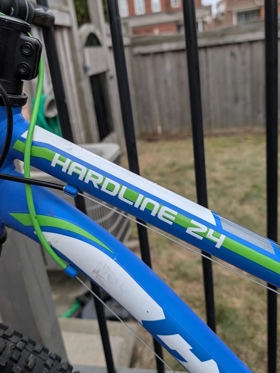 This blue CCM Hardline 24 mountain bike has a durable steel frame and 24-inch wheels. It's equipped with Shimano gearing for smooth rides. Perfect for trails and neighbourhood adventures! The bike stand is slightly broken but is still usable. Originally bought for $500!