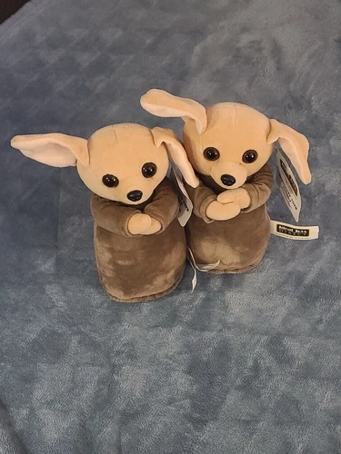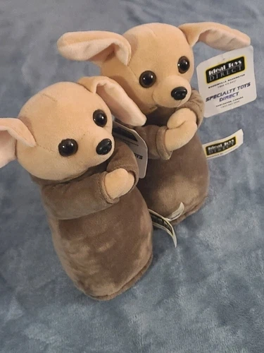 Up for auction is a pair of matching Jedi Chihuahua plush stuffed toys from Ideal Toys Direct. They are approximately 9 inches tall and are in like-new condition, essentially straight from the box. You'll receive two identical plushies in this listing.