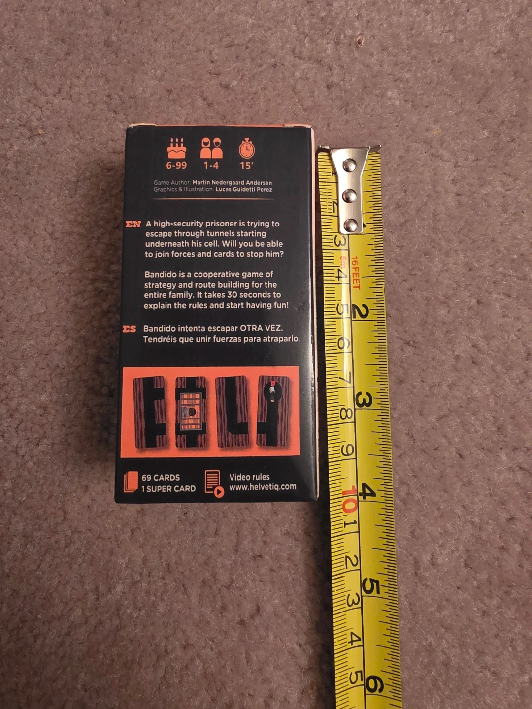 Bandido is a cooperative game of strategy and route building. Players will need to join forces and build tunnels to help a high-security prisoner escape. It takes 30 seconds to explain the rules and start having fun! Includes 69 cards and 1 super card.