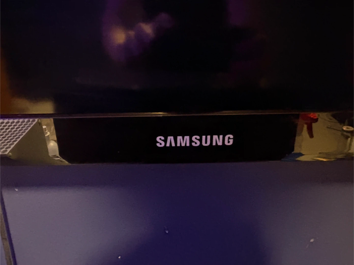 This is a Samsung flat screen television. It's black with a glossy finish. Comes with a wall mount and screws. Tv is relatively old but still runs fairly well perfect for casual gaming and/or just sitting back and watching something. No remote unfortunately