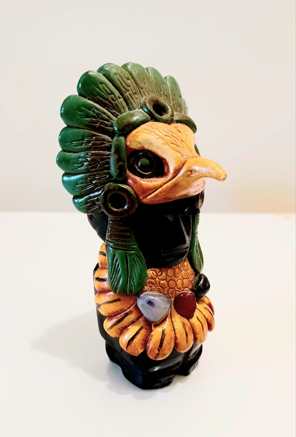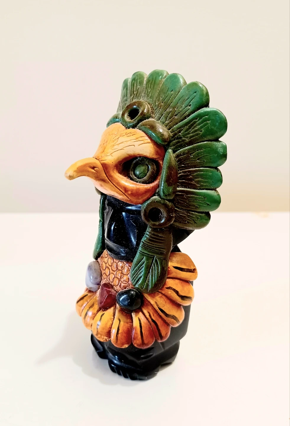 Vintage, Hand carved Onyx Aztec Eagle warrior sculpture, from Mexico, showcasing Intricate Details and Craftsmanship.