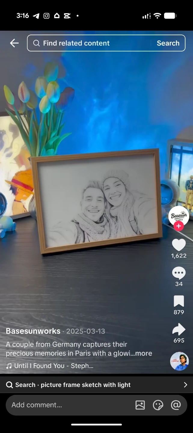 This is a custom sketch picture frame once light turned on the image magically becomes colored image. Please send a message for specifications and customization.