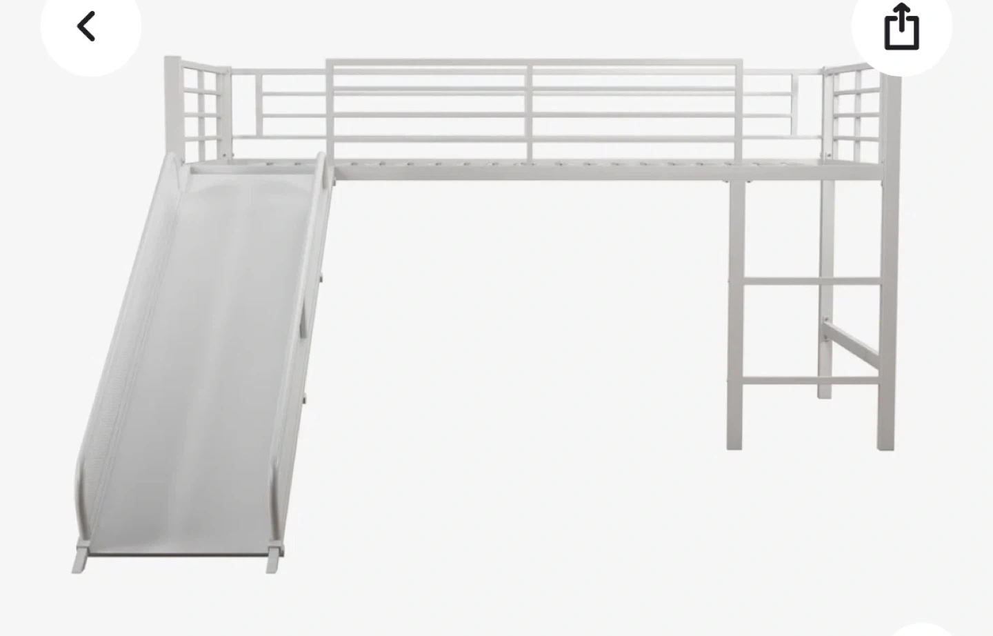 Eliud Twin Loft Bed with Slide – White (Mattress Included)